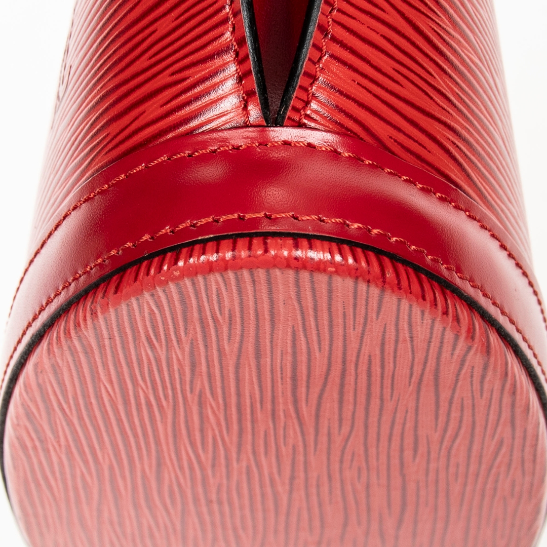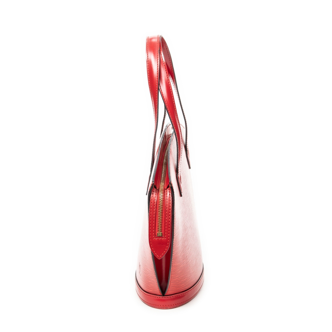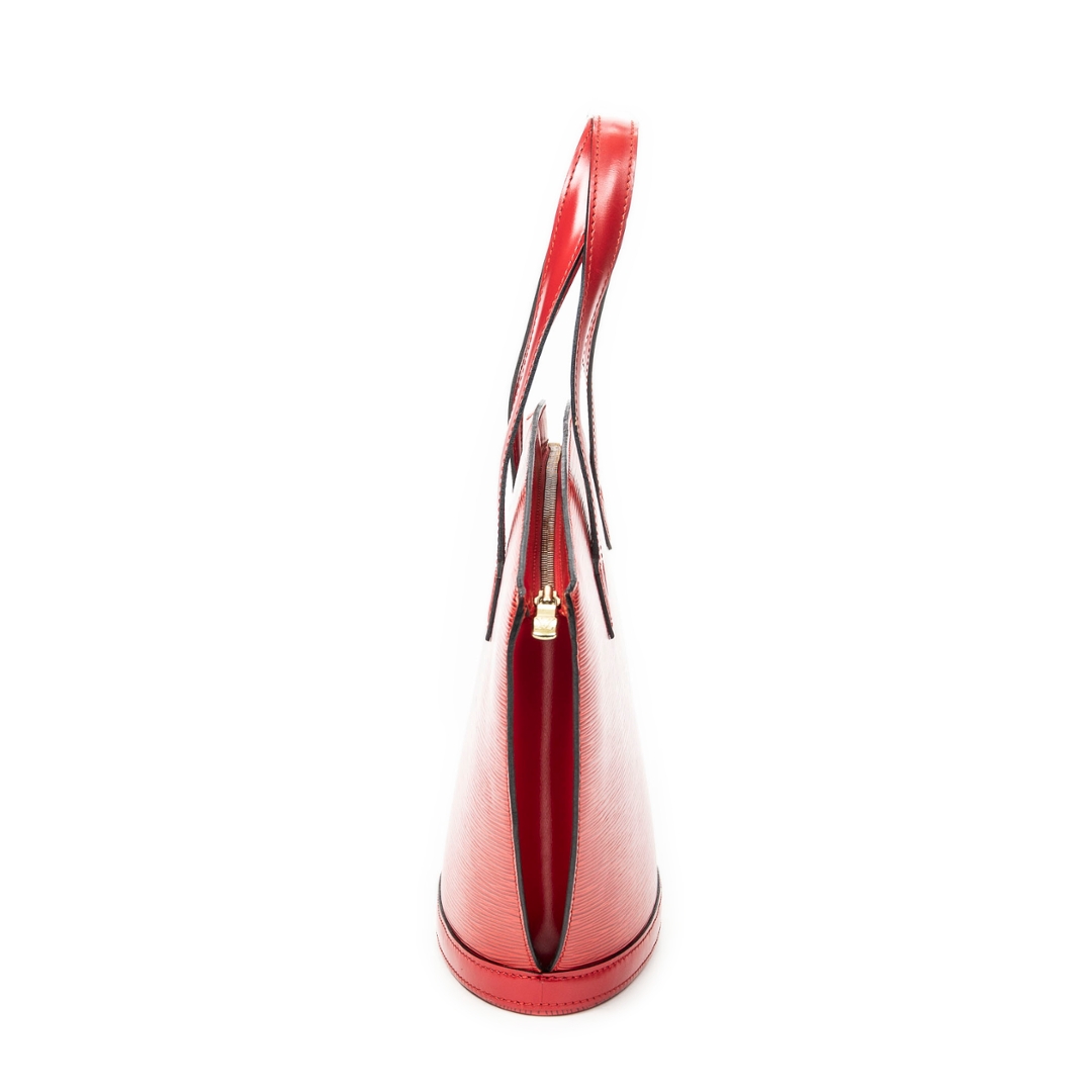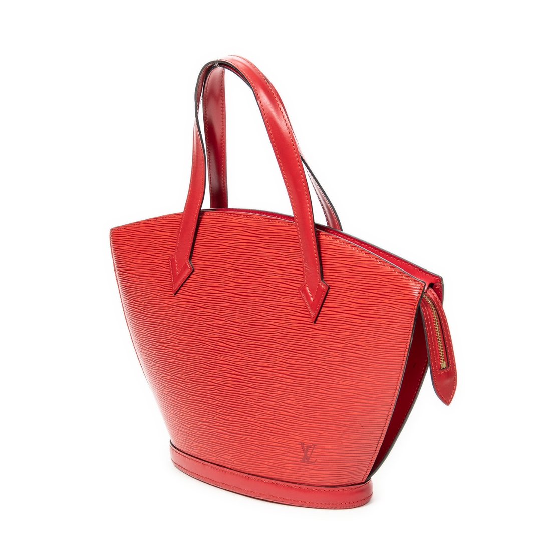 A vintage Louis Vuitton red calf leather St-Jacques bag with a certificate of authenticity. Approximately 24cm height, 23cm width.