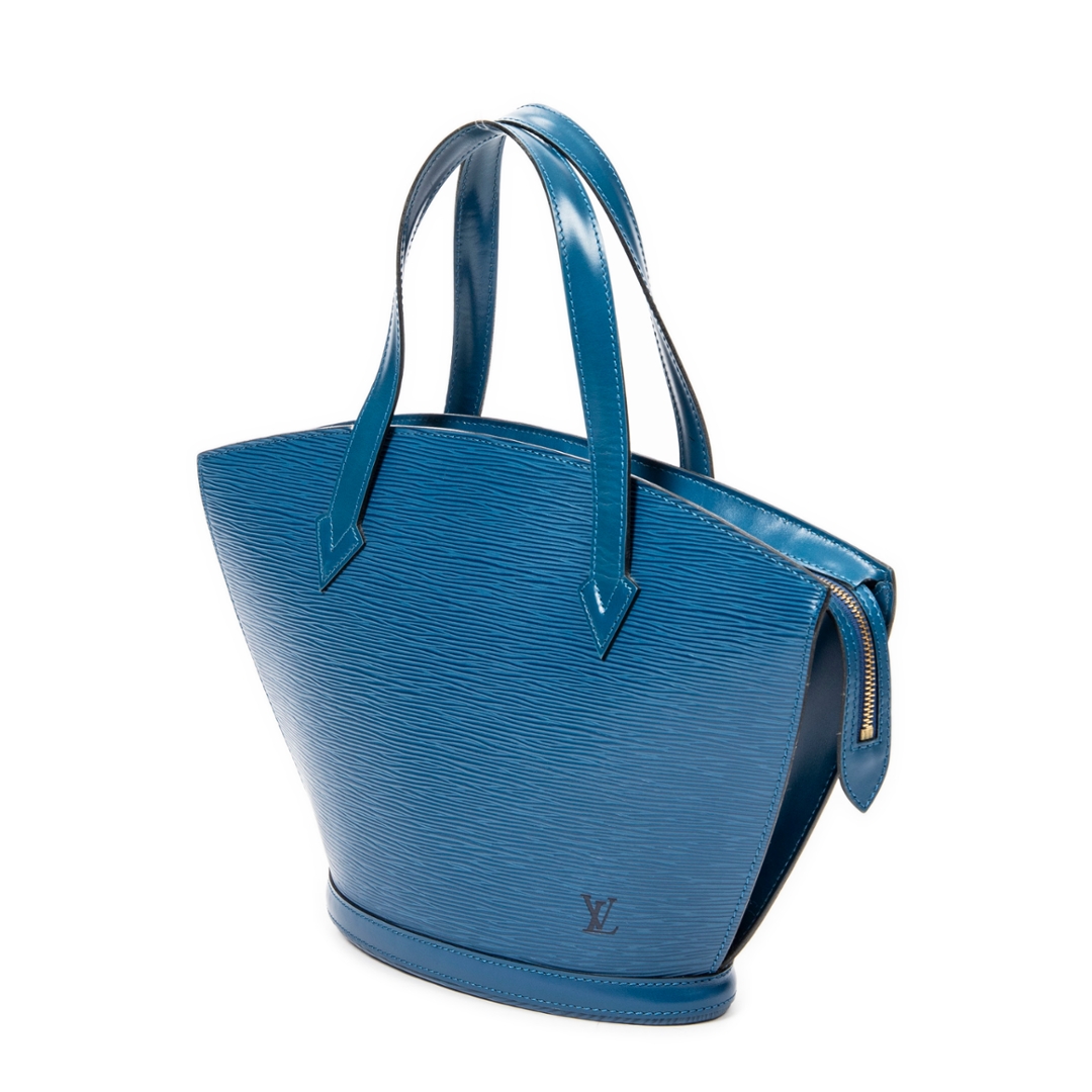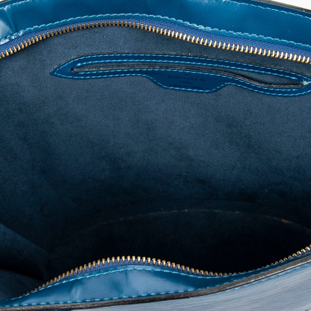 A vintage Louis Vuitton blue calf leather St-Jacques bag with a certificate of authenticity. Approximately 24cm height, 23cm width.