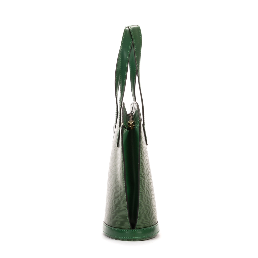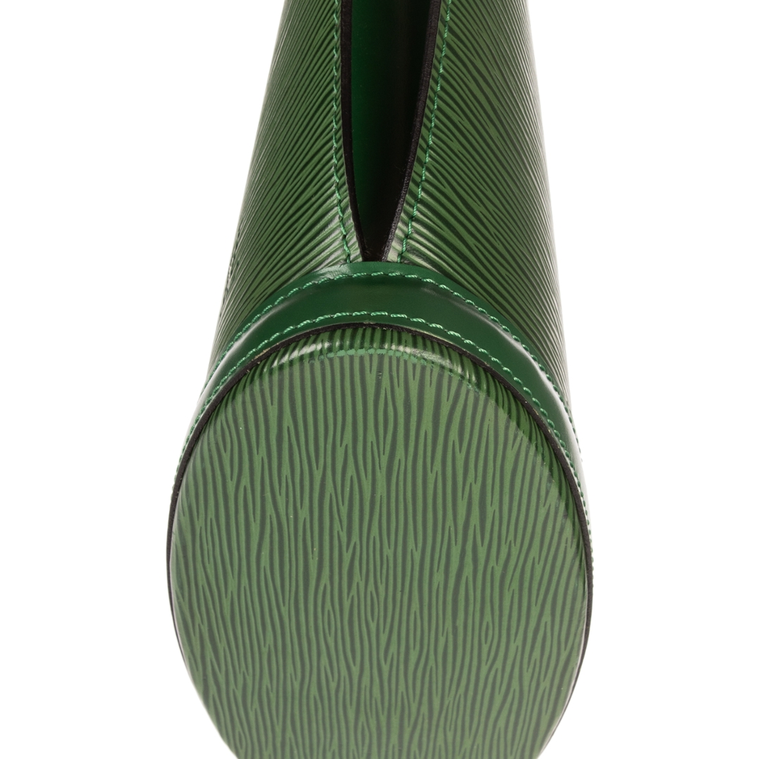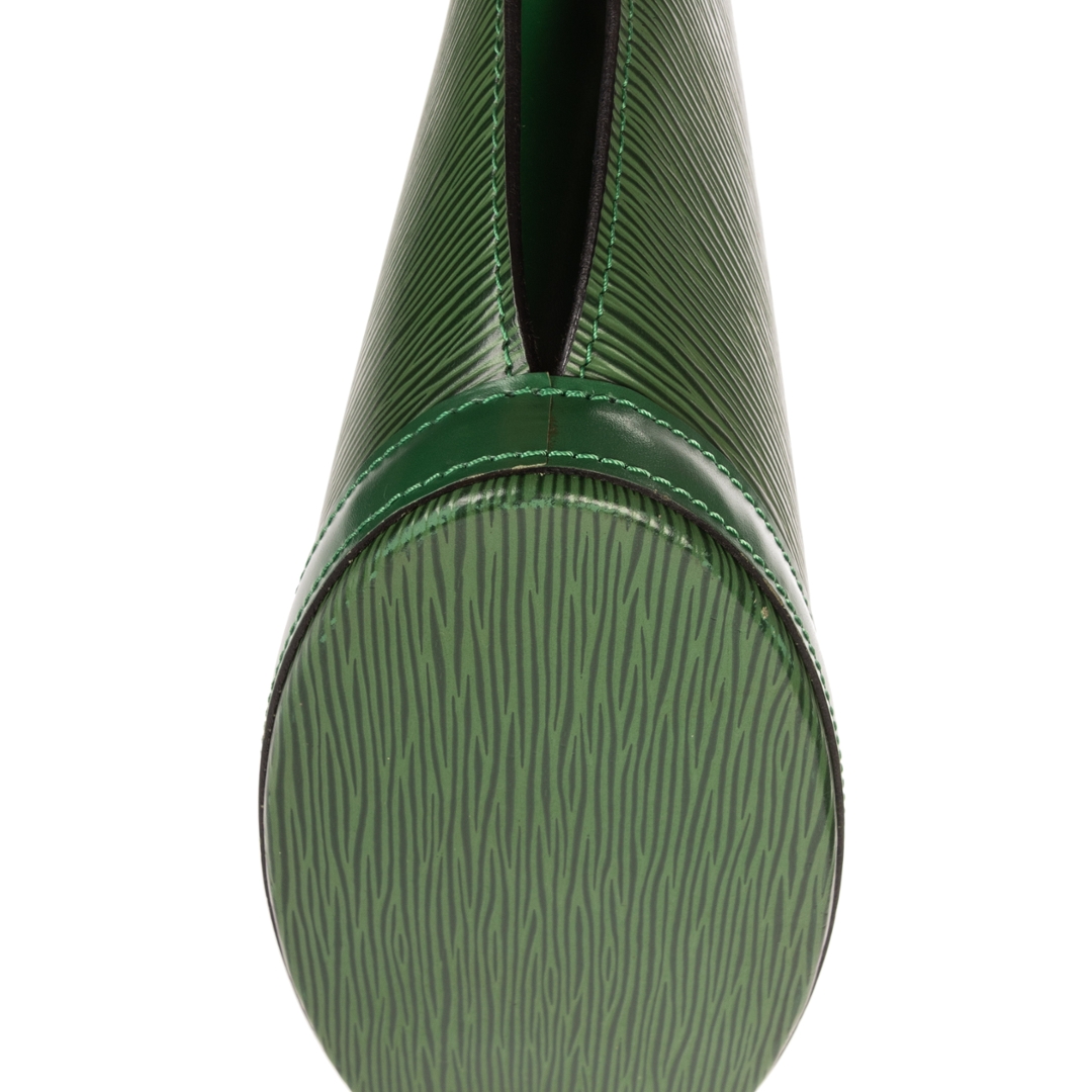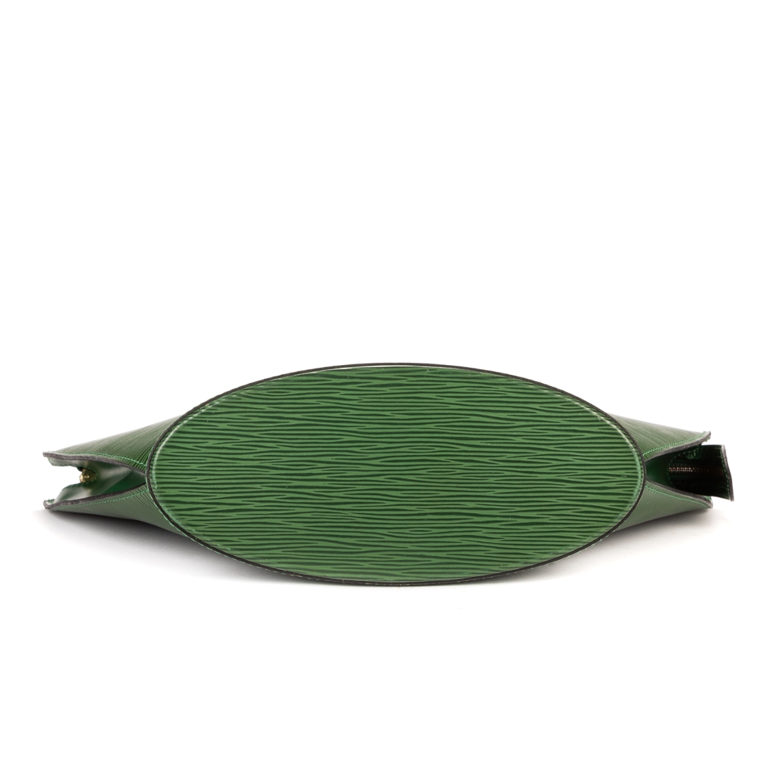 A vintage Louis Vuitton green calf leather St-Jacques bag with a certificate of authenticity. Approximately 24cm height, 23cm width.