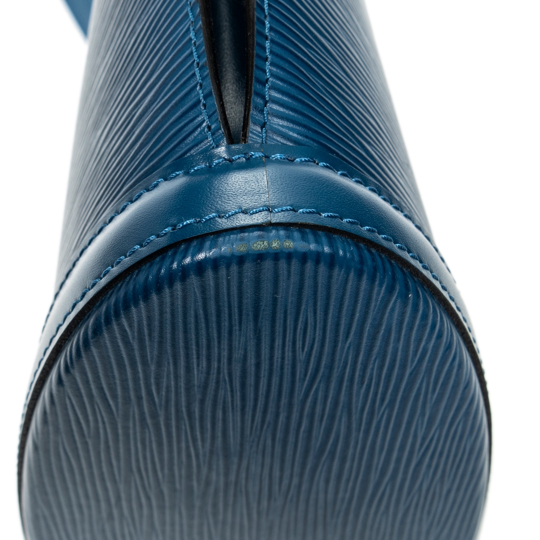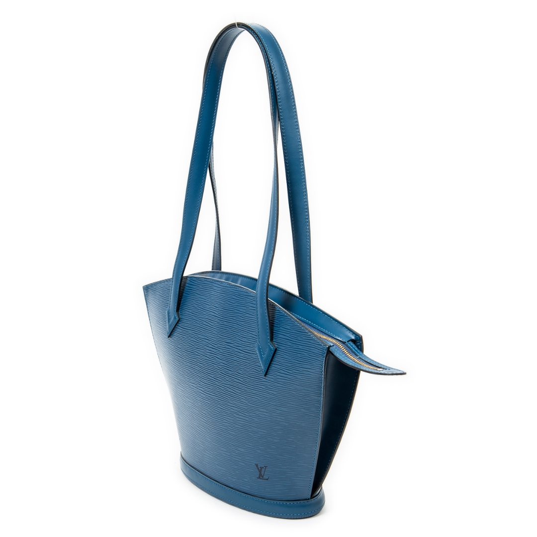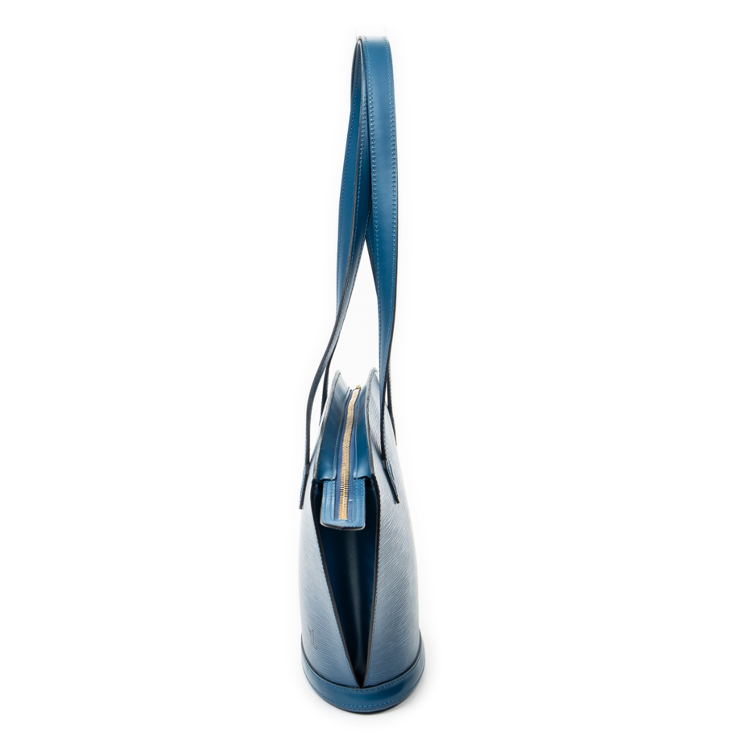 A vintage Louis Vuitton blue calf leather St-Jacques Long Straps bag with a certificate of authenticity, Approximately 24cm height, 23cm width.