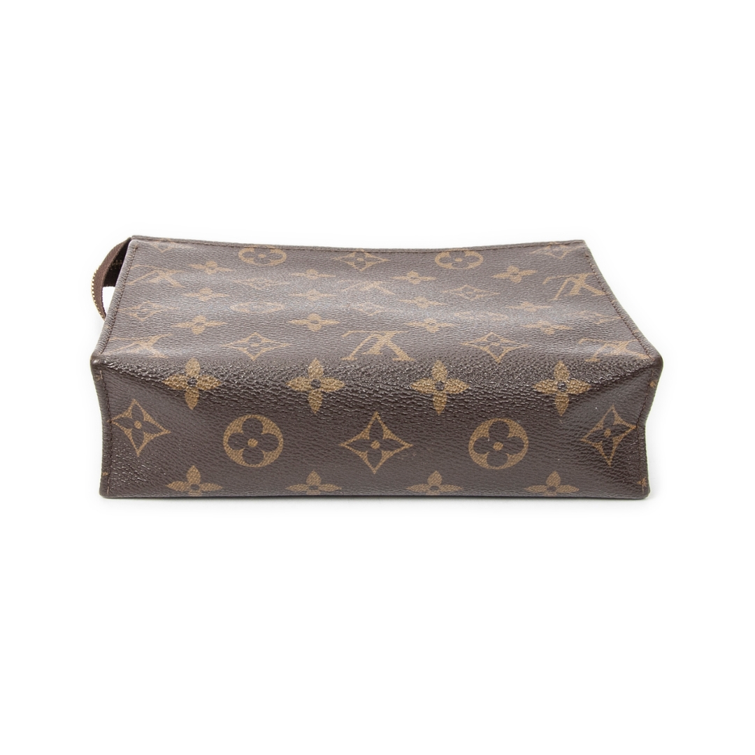 A vintage Louis Vuitton monogam coated canvas Toiletry Pouch bag with a certificate of authenticity. Approximately 14cm height, 19cm width.