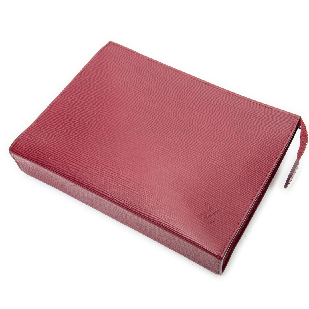 A vintage Louis Vuitton fuchsia calf leather Toiletry Pouch bag with a certificate of authenticity. Approximately 20cm height, 26cm width.