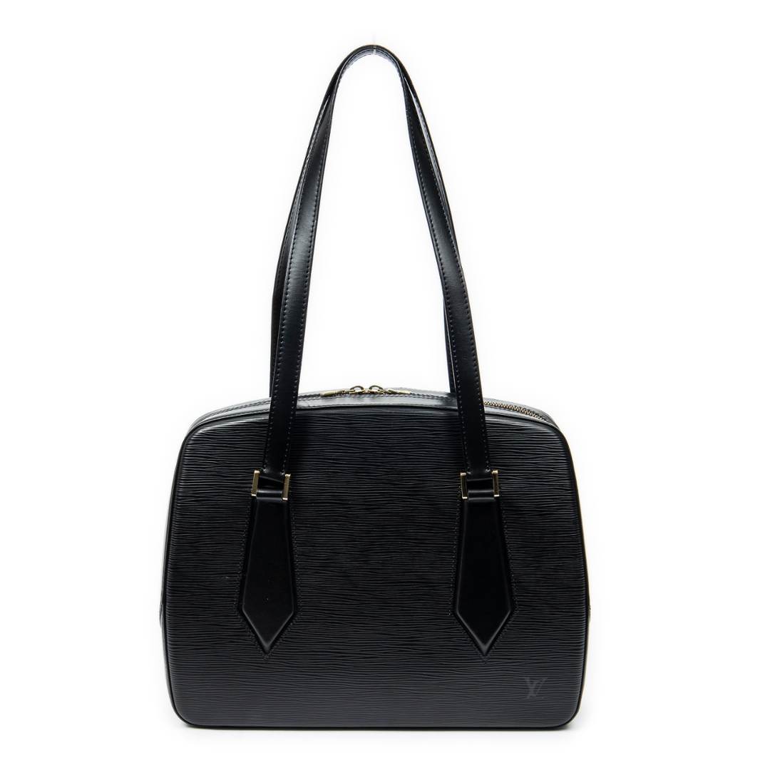 A vintage Louis Vuitton black calf leather Voltaire bag with a certificate of authenticity. Approximately 25cm height, 33cm width.