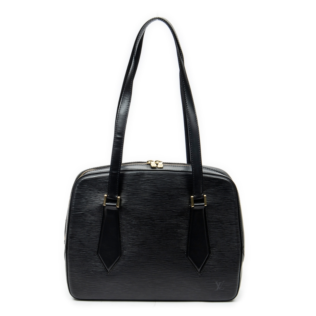 A vintage Louis Vuitton black calf leather Voltaire bag with a certificate of authenticity. Approximately 25cm height, 33cm width.