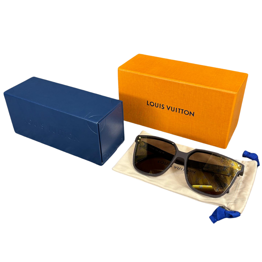 The sleek brown acetate frame is complemented by dark lenses, offering excellent UV protection and a stylish, confident look. Subtle gold-tone accents at the temples highlight Louis Vuitton’s attention to detail, while the lightweight structure ensures supreme comfort throughout the day.