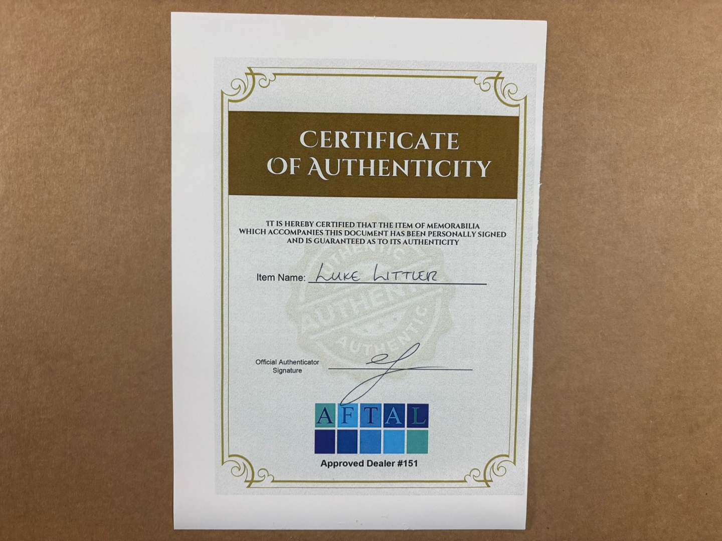 A signed and authenticated Luke Littler shirt, professionally mounted in a stunning presentation frame. Bursting with energy and colour, the shirt proudly features Littler’s signature nickname, “The Nuke,” emblazoned in bold yellow graphics, with his authentic autograph prominently displayed, making this a centrepiece of any memorabilia collection.