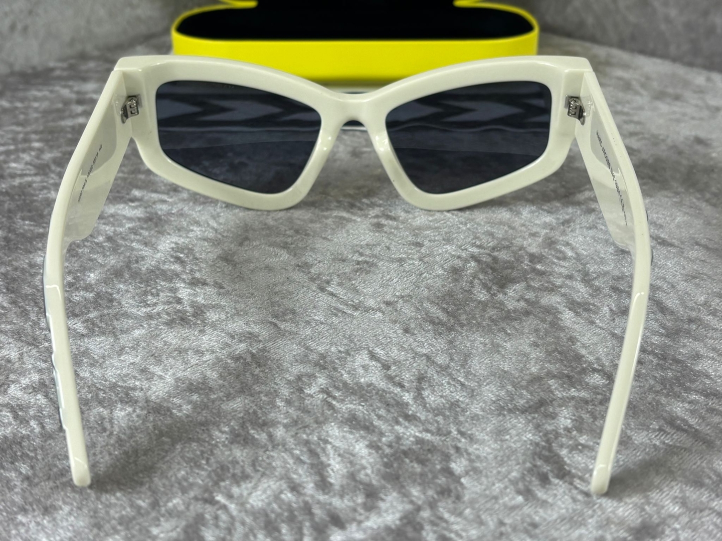 Brand new and unused, these Marc Jacobs Cat Eye sunglasses make a bold and unmistakable statement. The striking beige frame is sculpted into a sharp, contemporary cat eye silhouette, delivering a confident, fashion-led edge. Dark tinted lenses provide contrast and balance, enhancing the dramatic lines while offering a sleek, modern finish suited to everyday wear.