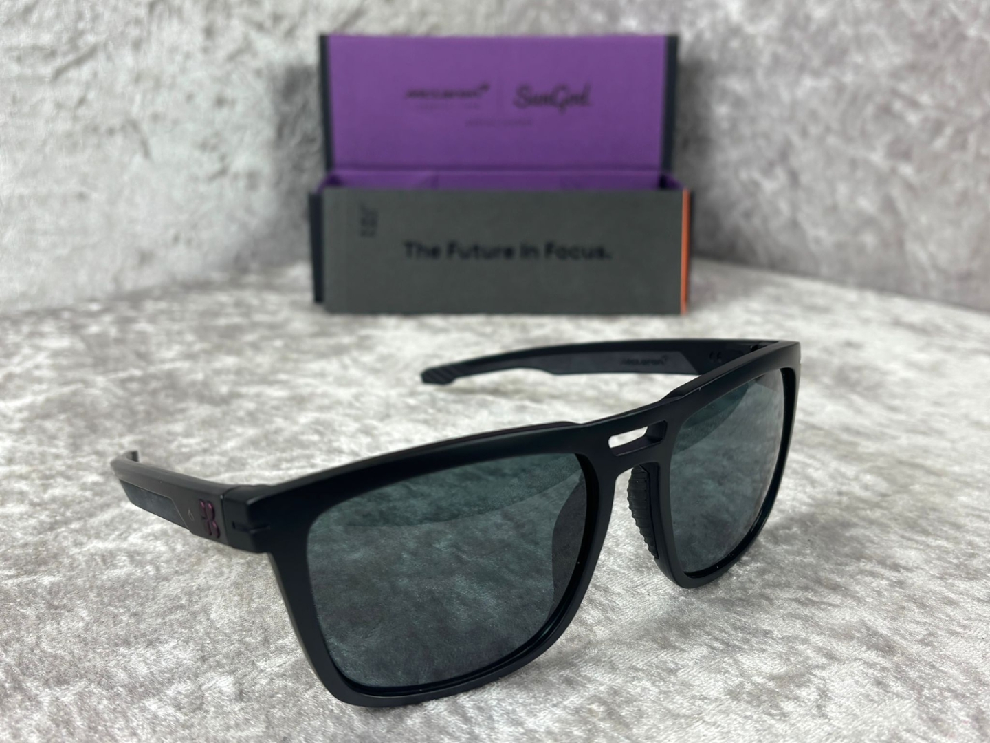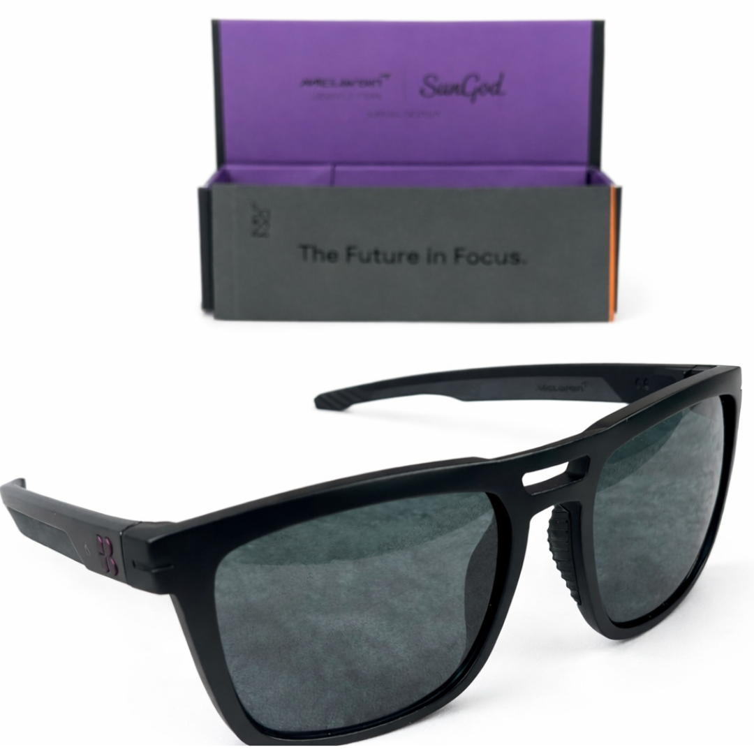 A brand new, unused pair of McLaren SunGod Tempests Polarised Sunglasses, combining high-performance optics with the distinctive design language of the McLaren collaboration. The Tempests feature a lightweight matte black frame with a clean, angular silhouette, offering a modern sport-inspired look suited to both everyday wear and active lifestyles. Dark polarised lenses reduce glare and enhance clarity, providing excellent visual comfort in bright conditions while maintaining a sleek, understated aesthetic.