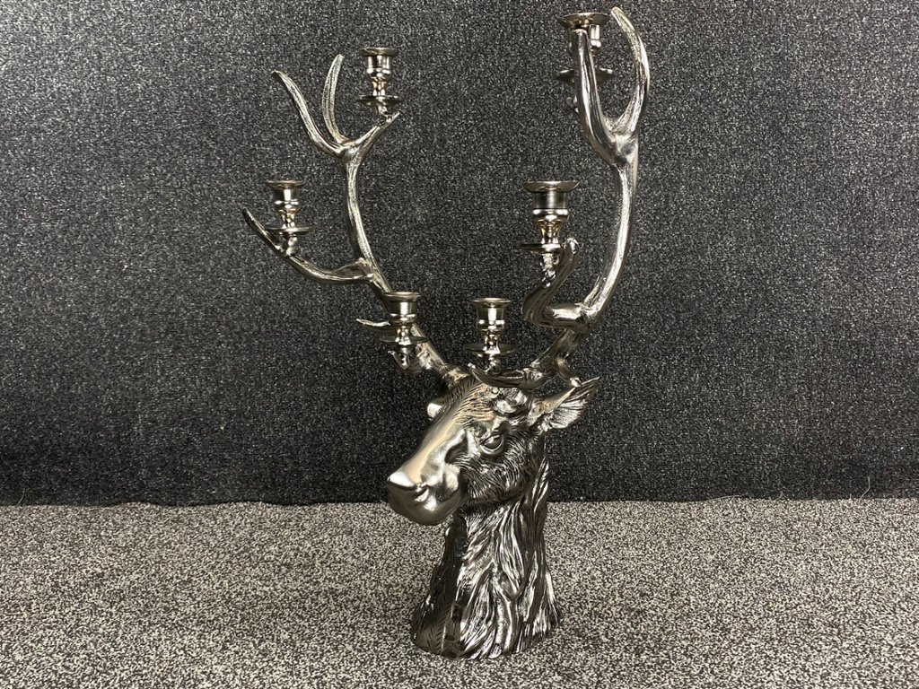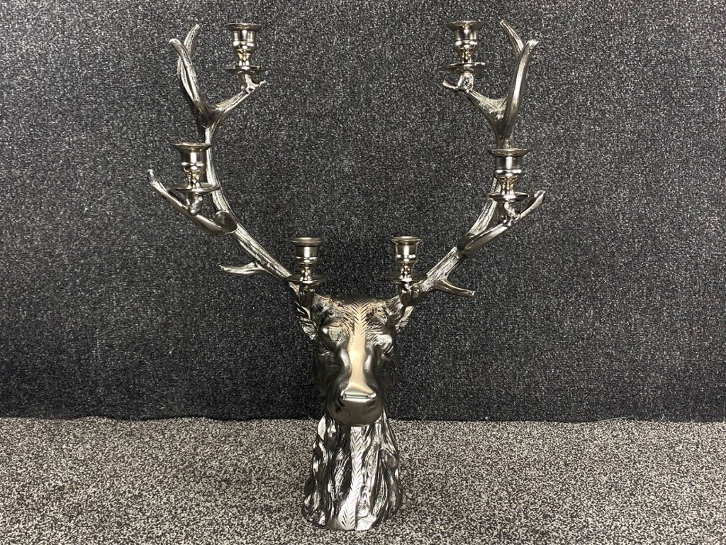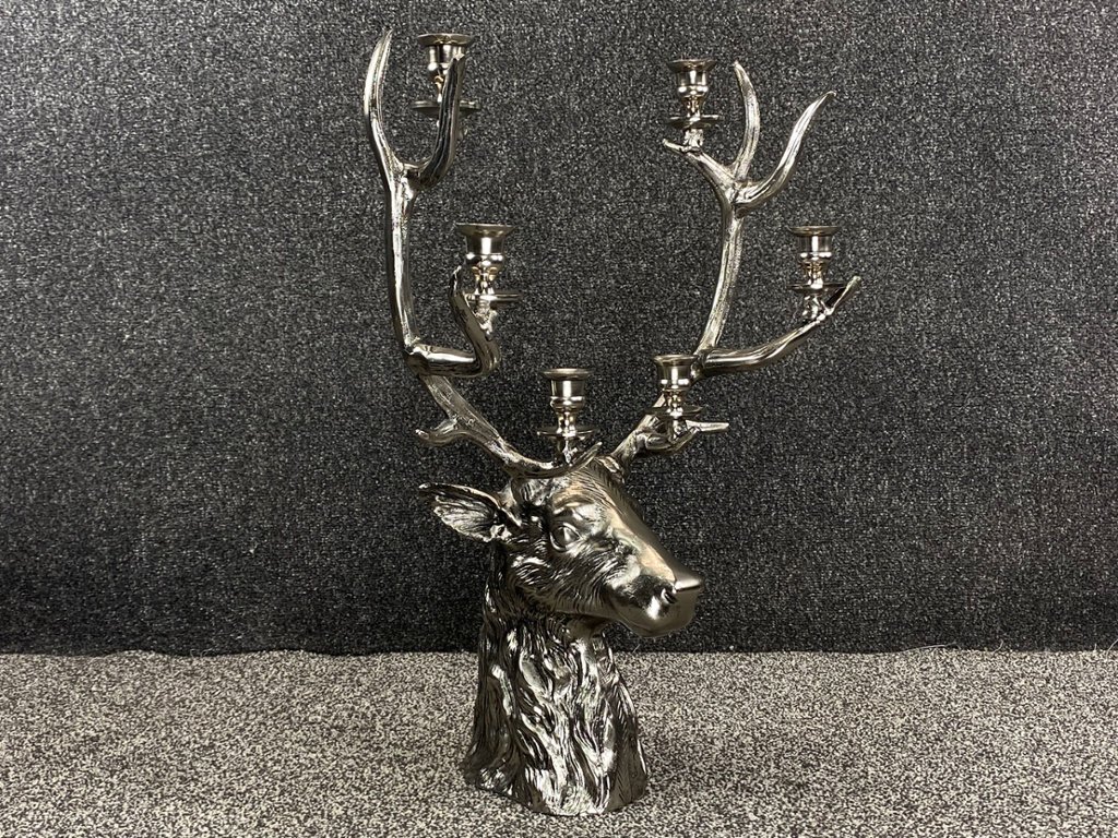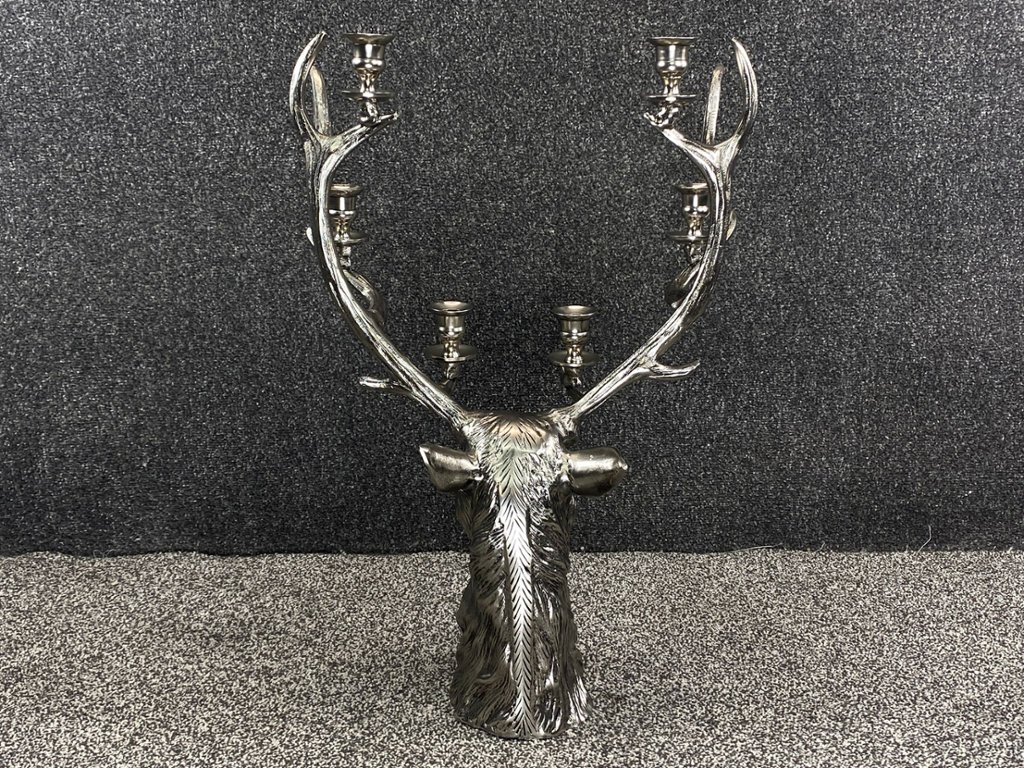 A Medium Silver Stag Design Six Candle Holder. Approximately 26" height, 16" width, 10" depth