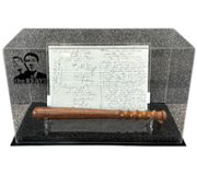 A signed & authenticated Mike Tyson Black Boxing Shorts in a light-up presentation frame. Approx 31" height, 51" width.