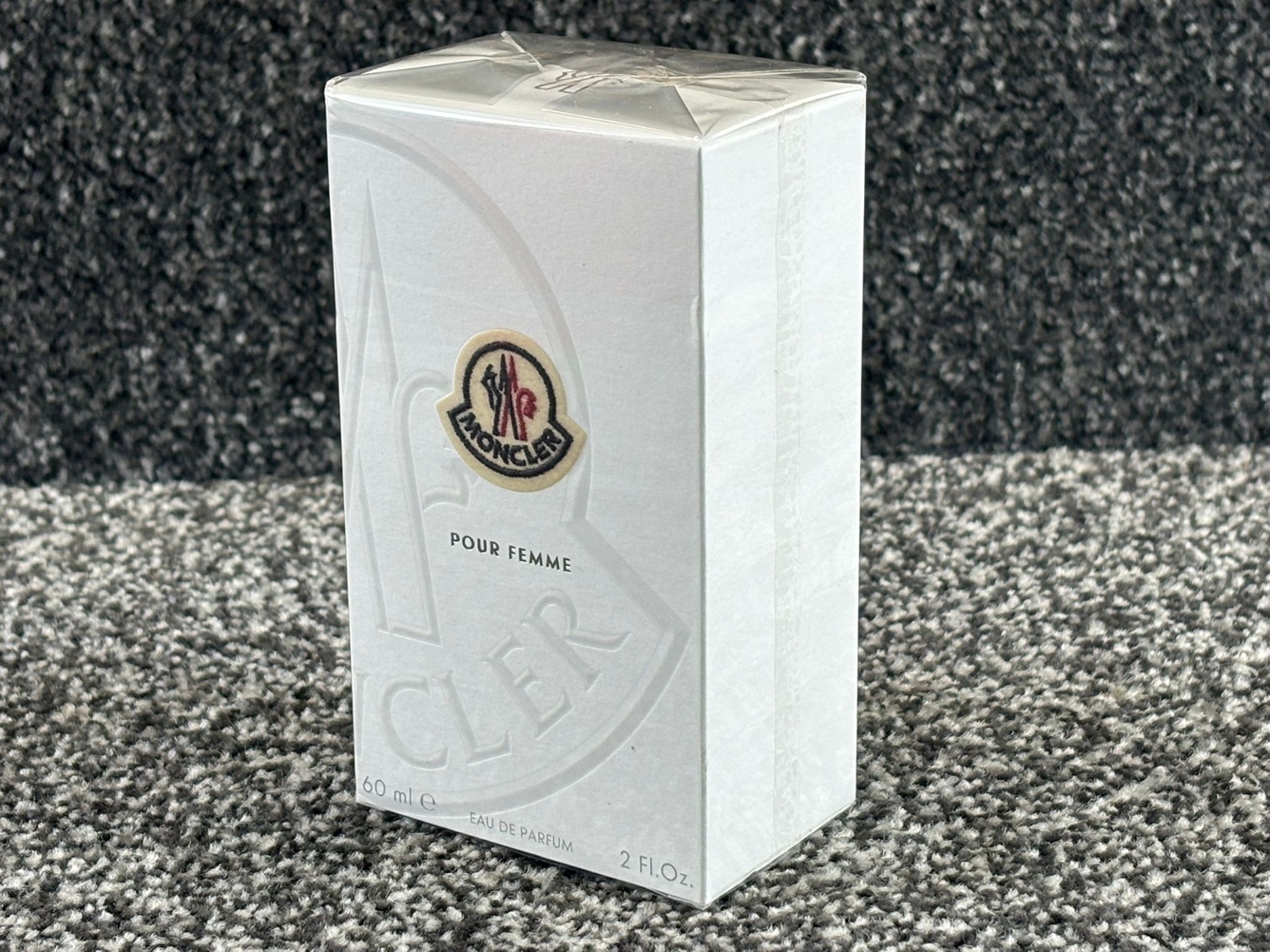 A 60ml bottle of Moncler Pour Homme Eau de Parfum, presented in