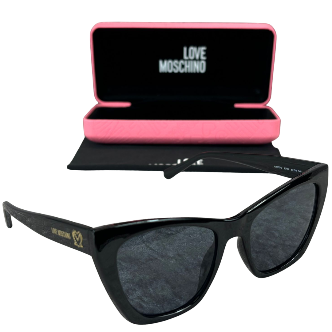 Supplied brand new and unused, complete with the original Moschino presentation case, this pair is ready to wear or gift. A timeless black design with unmistakable designer character, perfect for adding instant polish and attitude to any outfit.