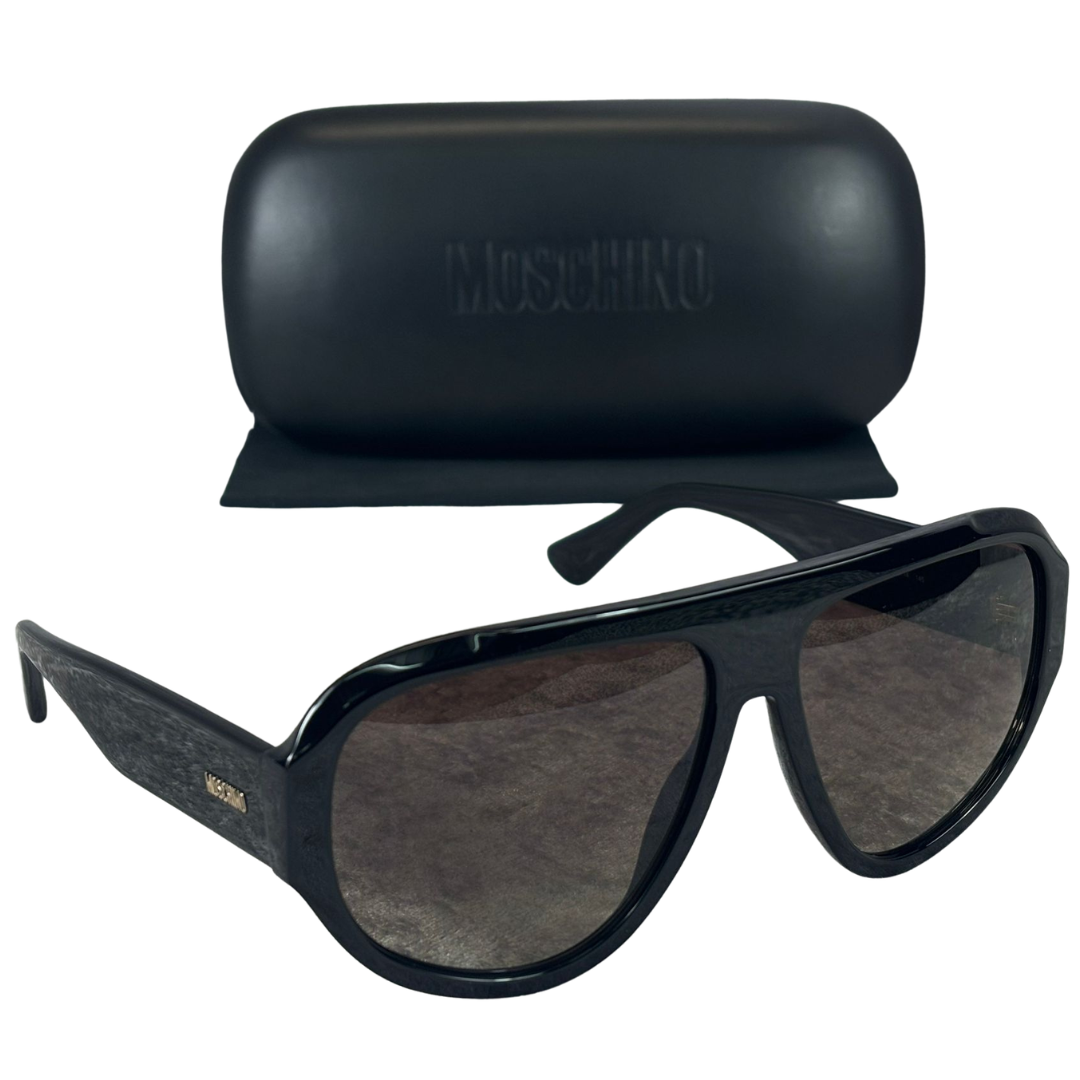 A Brand new, unused pair of Moschino Square Flat Top - Black Sunglasses.
