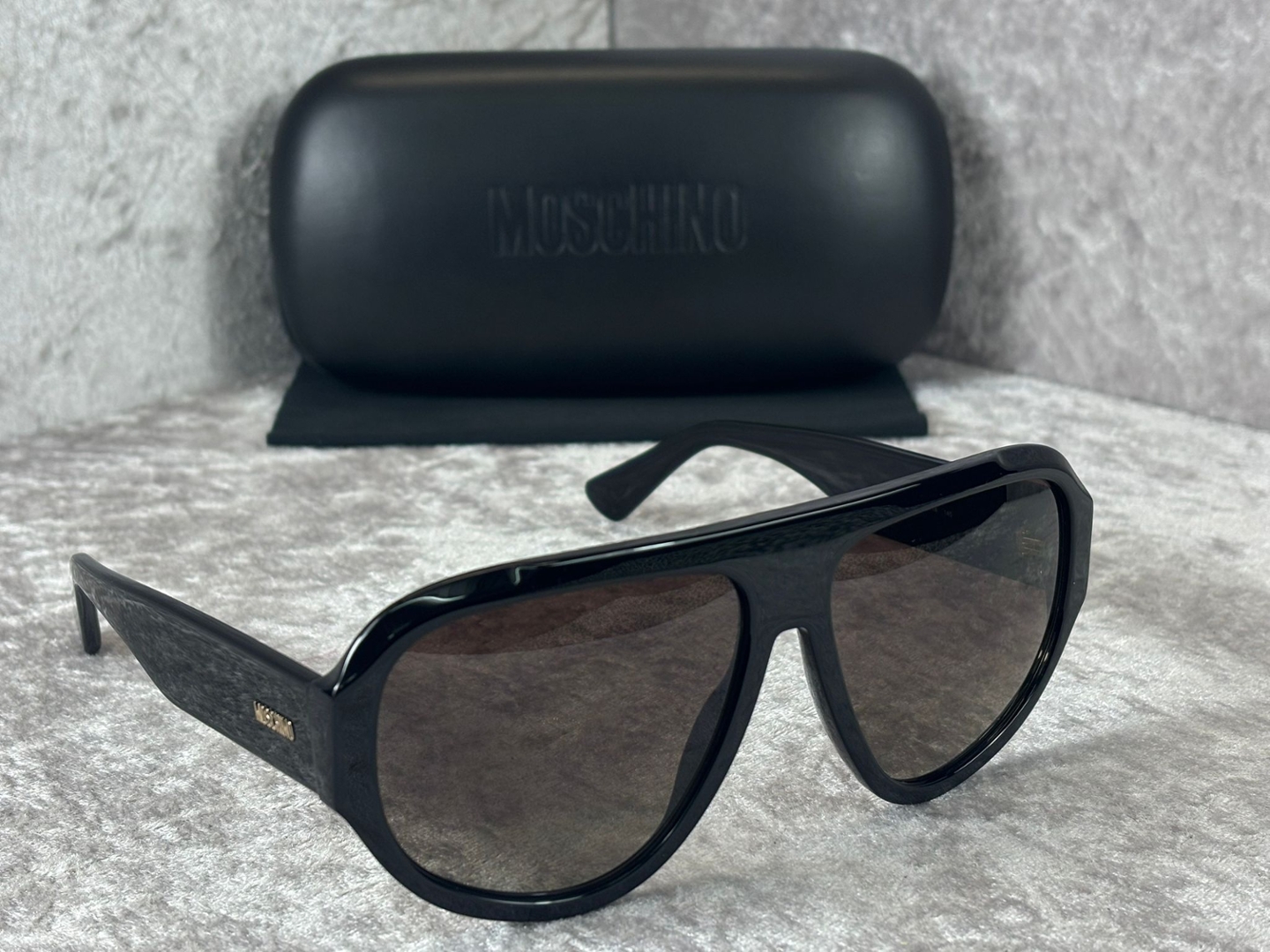 Supplied brand new and unused, complete with Moschino case, this pair is ideal for those seeking standout designer eyewear. A strong, structured design combined with classic black colouring makes them a versatile yet commanding addition to any collection.