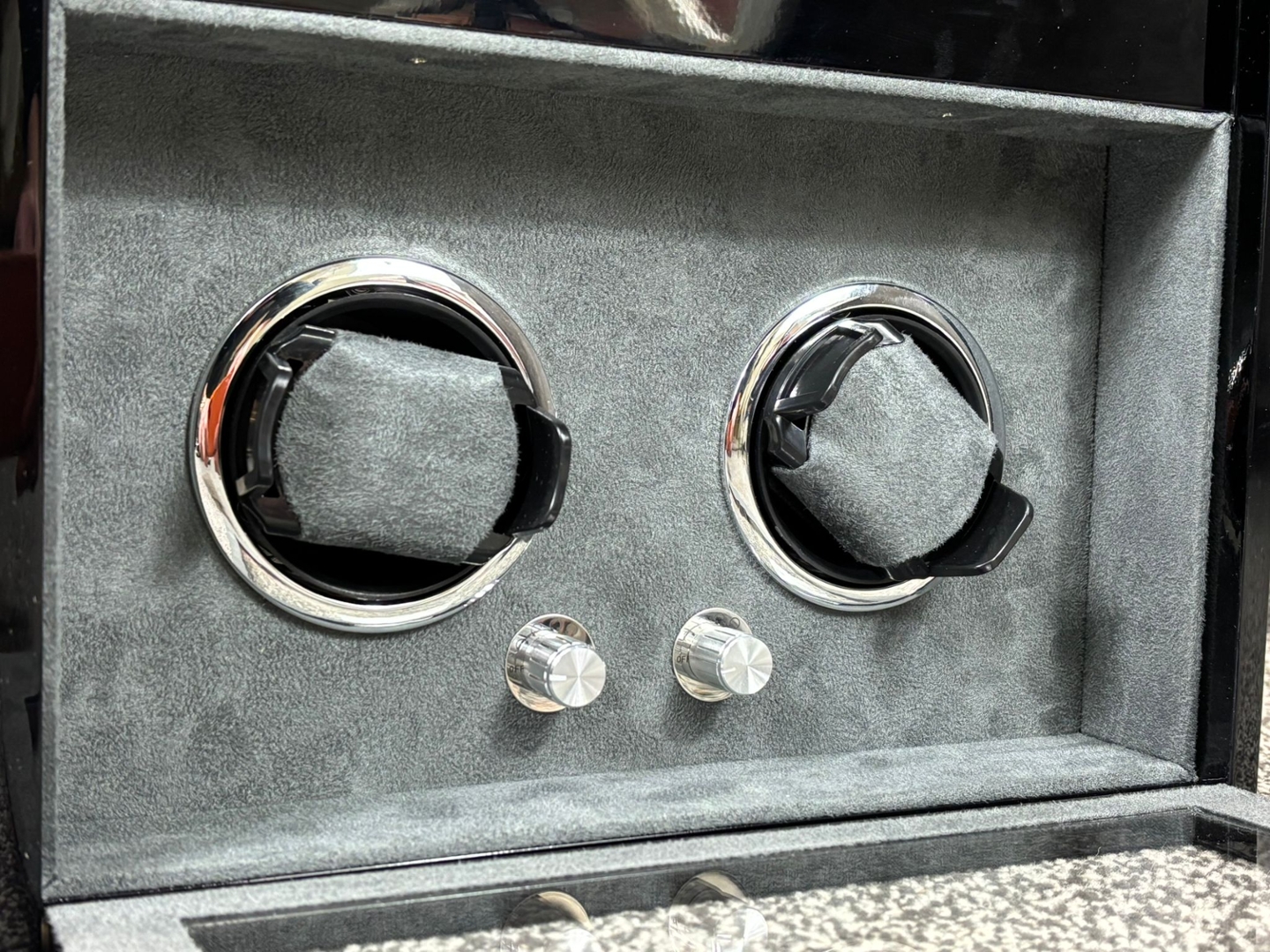 - > Motion Double Black Wooden Piano Finish Watch Winder