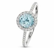 - > Natural Aquamarine 0.85ct & Diamond 0.55ct Round Shaped Cluster Ring