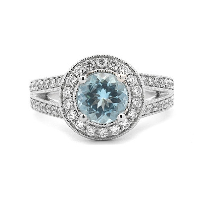 - > Natural Aquamarine 0.89ct & Diamond 0.42ct Round Shaped Cluster Ring