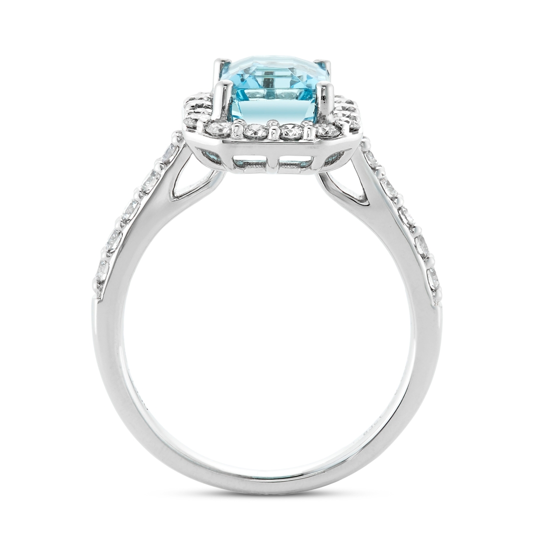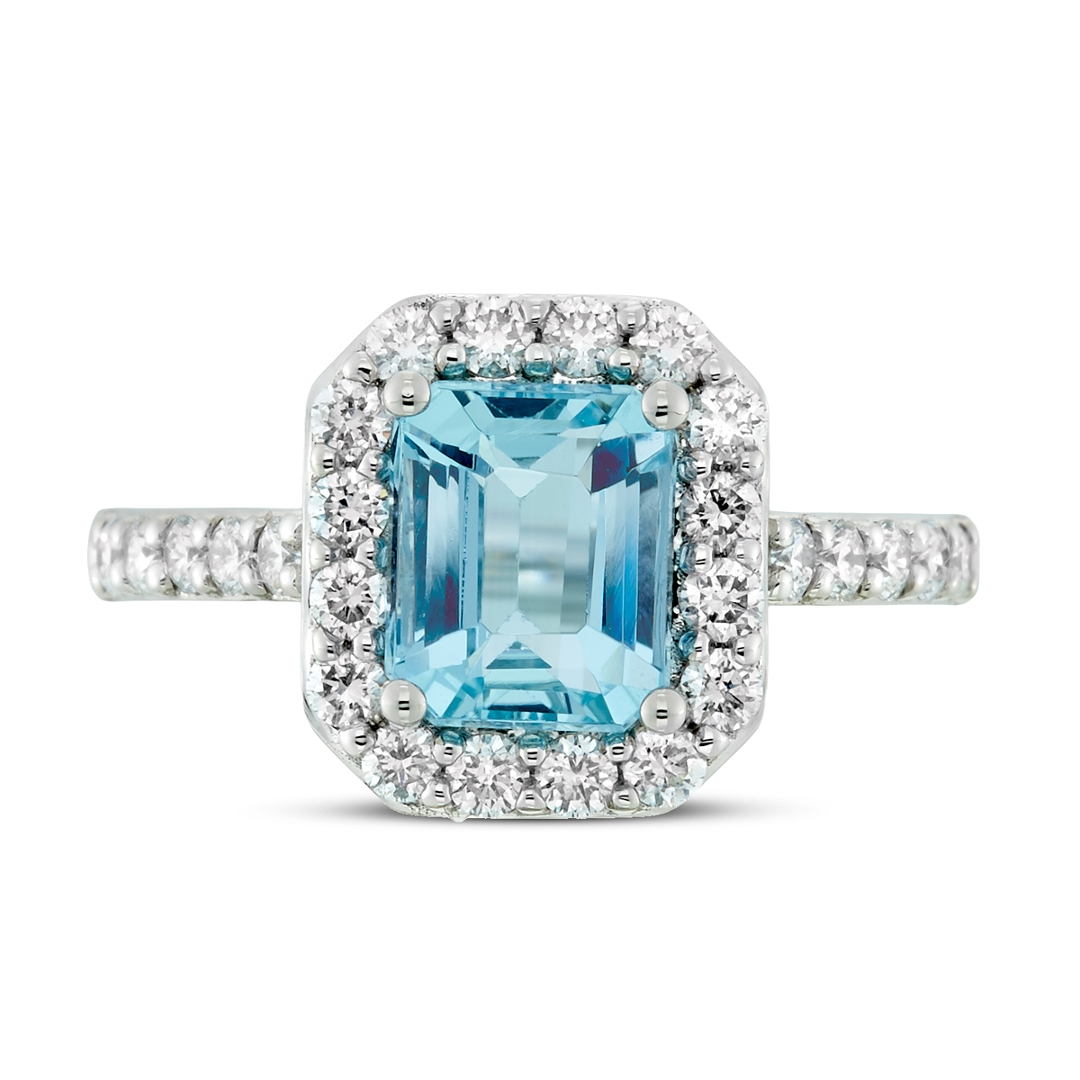 - > Natural Aquamarine 1.83ct & Diamond 0.69ct Asscher Shaped Cluster Ring