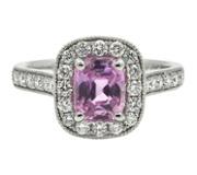 Surrounding the centre stone is a double halo of natural brilliant-cut diamonds, further enhanced by diamonds set along the shoulders, offering a total weight of 0.81ct. These natural diamonds provide a level of sparkle and sophistication that synthetic stones cannot replicate. Their enduring desirability is recognised not only for their beauty but also for their stability in the jewellery market, giving this ring notable investment appeal for years to come.
