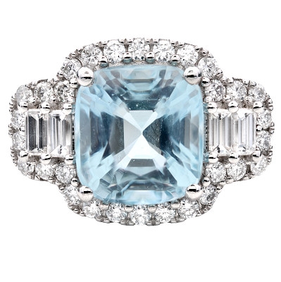 - > Natural Aquamarine 3.91ct & Diamond 0.79ct Cushion Shaped Cluster Ring