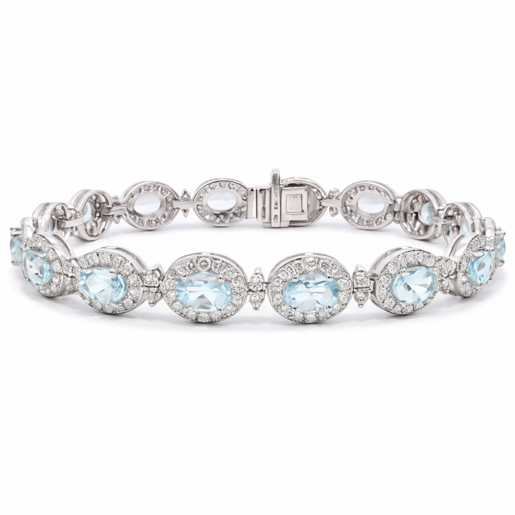 Natural aquamarines and diamonds are valued for their geological origin and enduring demand in fine jewellery. Well-balanced gemstone bracelets remain highly desirable, combining aesthetic appeal with long-term appreciation potential. This piece offers visual refinement, confidence in quality, and lasting value, making it a compelling acquisition for collectors and discerning buyers alike.