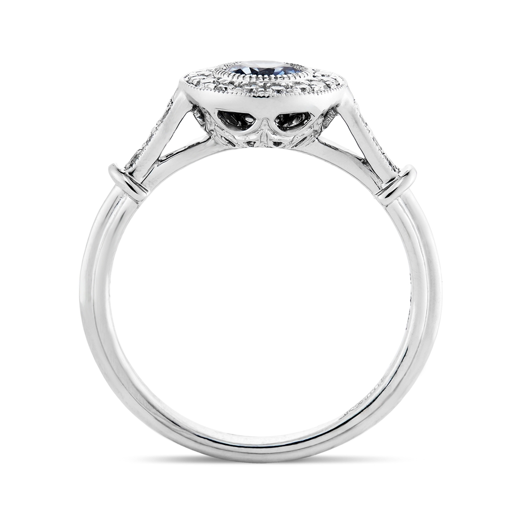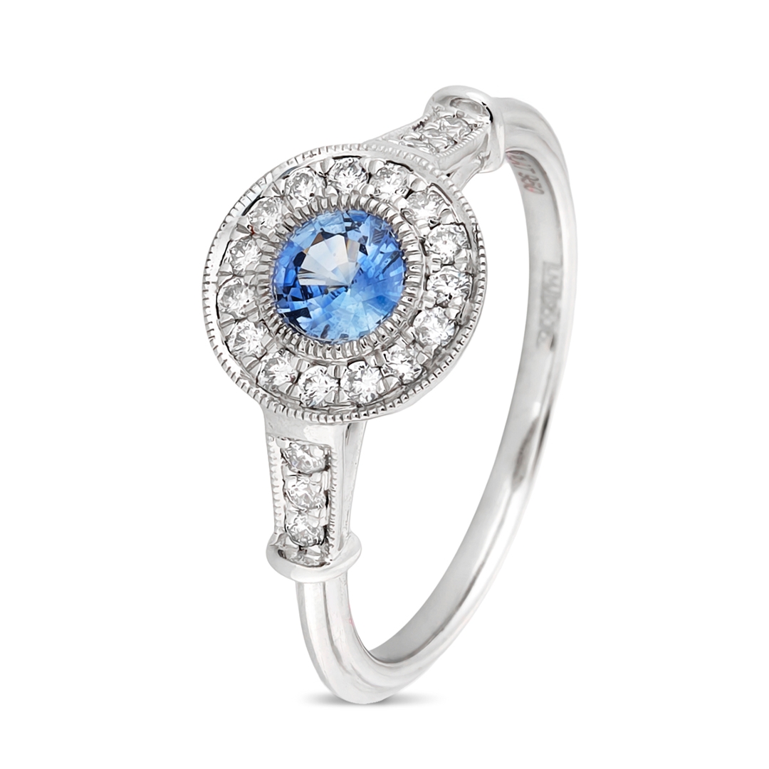 - > Natural Blue Sapphire 0.60ct & Diamond 0.25ct Round Shaped Cluster Ring