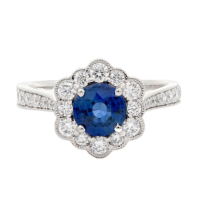 - > Natural Blue Sapphire 0.87ct & Diamond 0.68ct Flower Shaped Cluster Ring