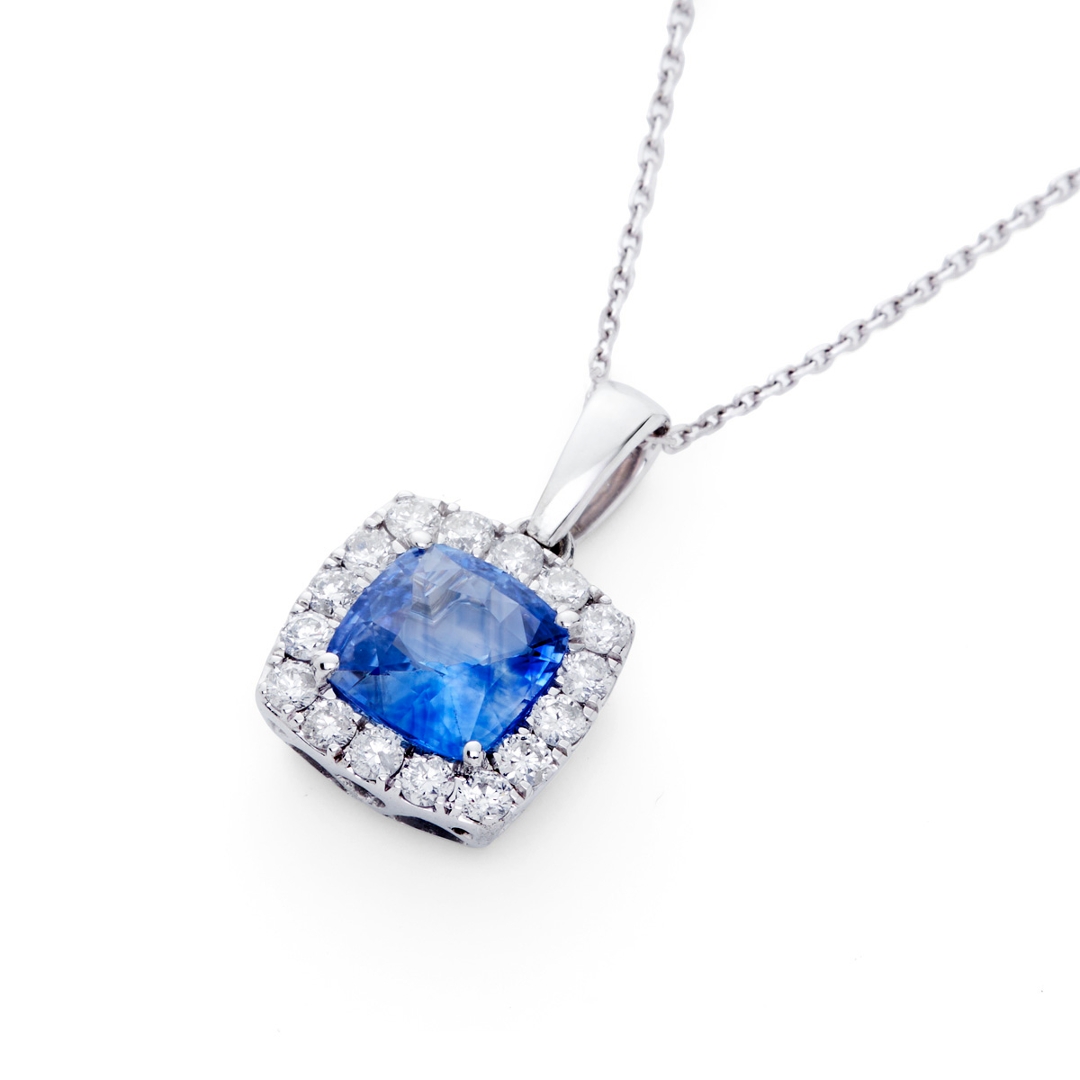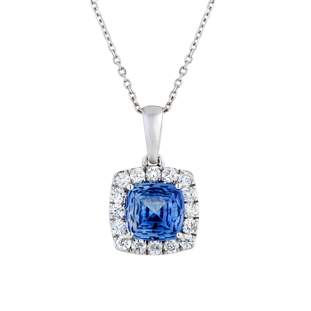 - > Natural Blue Sapphire 0.99ct & Diamond 0.28ct Cushion Shaped Cluster Pendant