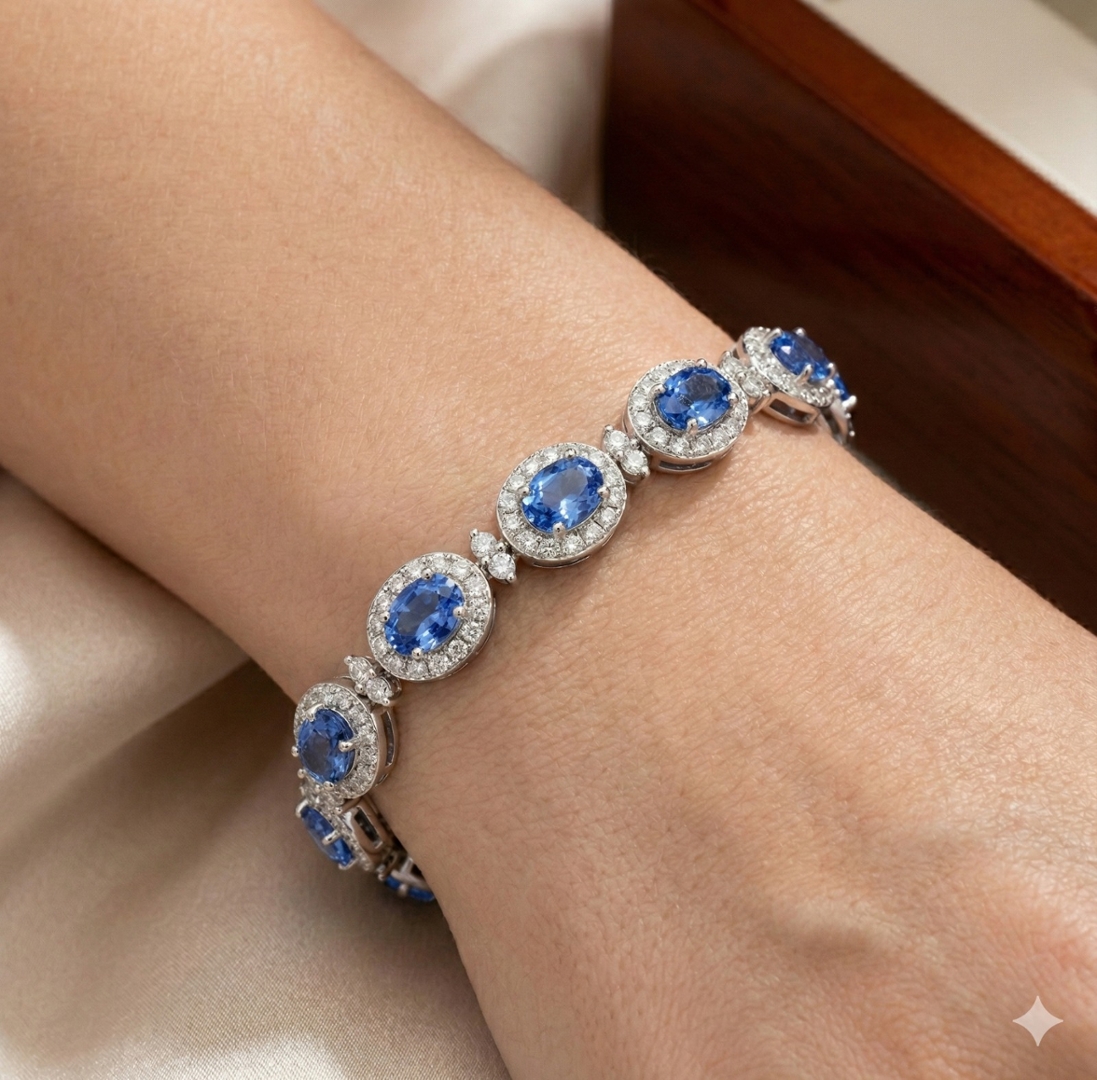 Natural blue sapphires and diamonds are valued for their rarity, geological origin, and consistent global demand. High-quality gemstone bracelets with substantial carat weight remain highly desirable, offering both emotional appeal and long-term appreciation potential. This piece combines visual impact with tangible value, making it a compelling acquisition for collectors and discerning buyers alike.
