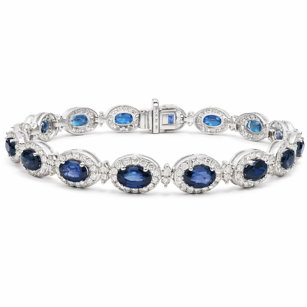 - > Natural Blue Sapphire 10.24ct & Diamond 3.33ct Oval Shaped Cluster Bracelet