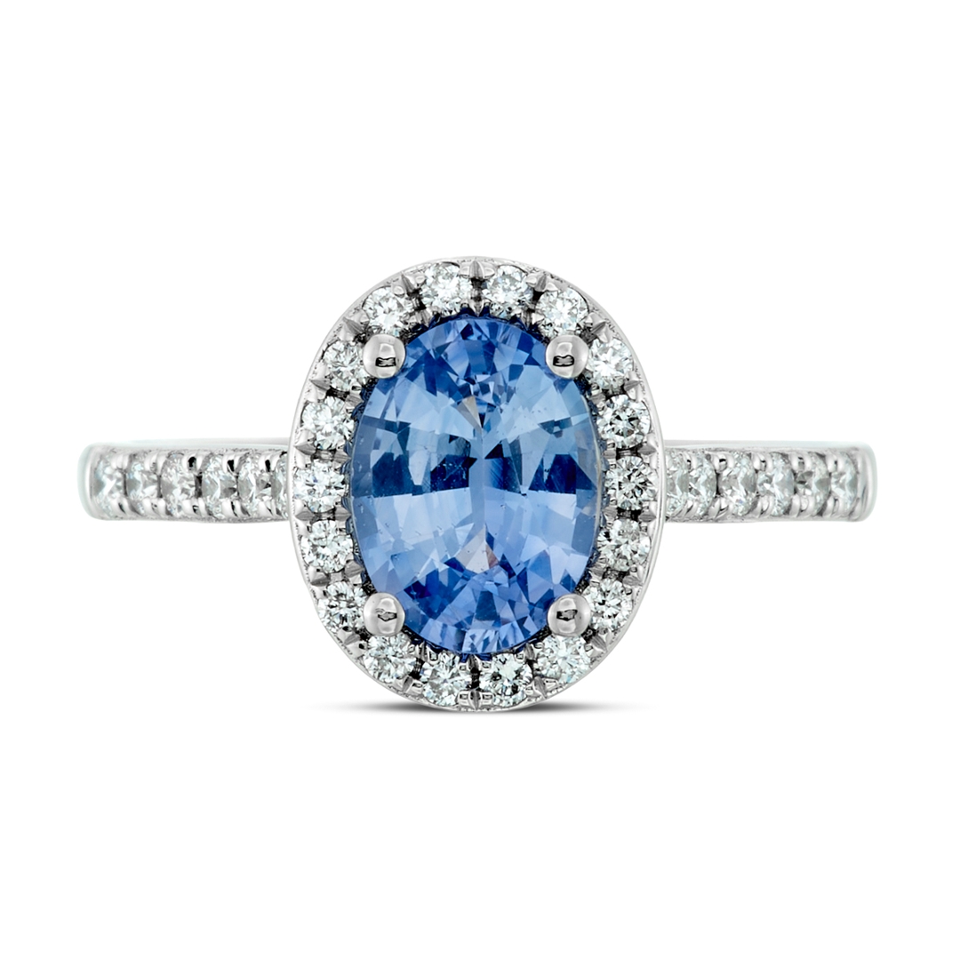 - > Natural Blue Sapphire 1.29ct & Diamond 0.34ct Oval Shaped Cluster Ring