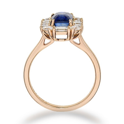 - > Natural Blue Sapphire 2.55ct & Diamond 0.94ct Emerald Shaped Cluster Ring