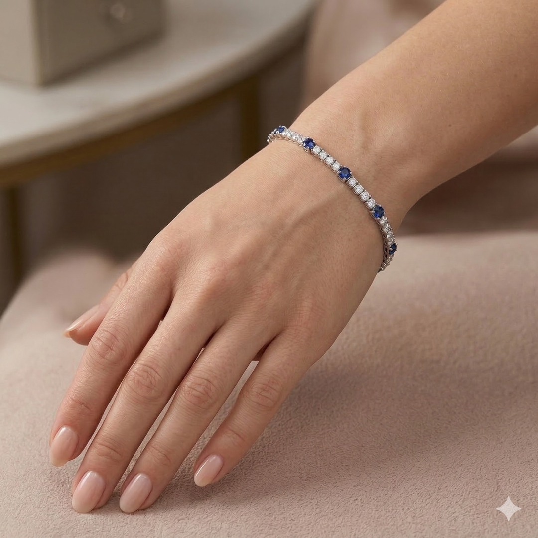 - > Natural Blue Sapphire 3.25ct & Diamond 3.49ct Cluster Bracelet