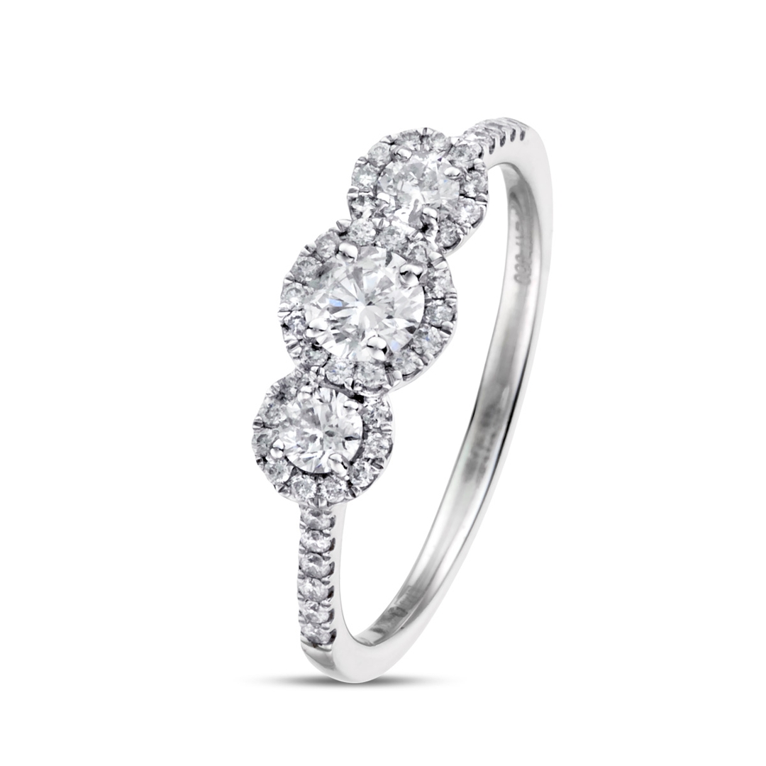 A brand-new, unused, certified natural diamond, brilliant-shaped trio cluster ring, set with a cluster of brilliant-cut diamonds to the centre & shoulders, set in 18ct white gold.