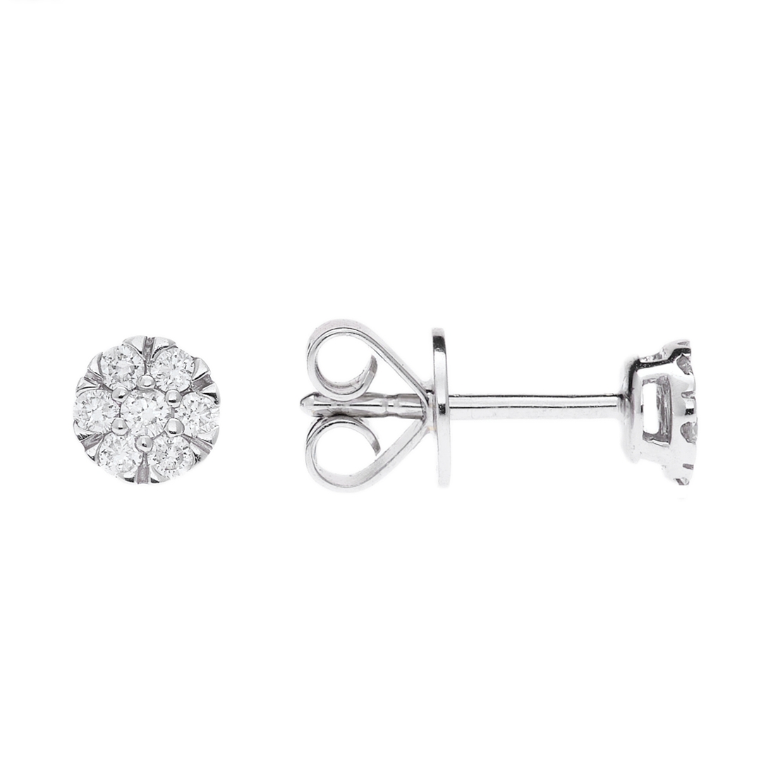 A brand new, unused, certified pair of natural diamond cluster earrings, set with a cluster of brilliant cut diamonds, set in 18ct white gold.