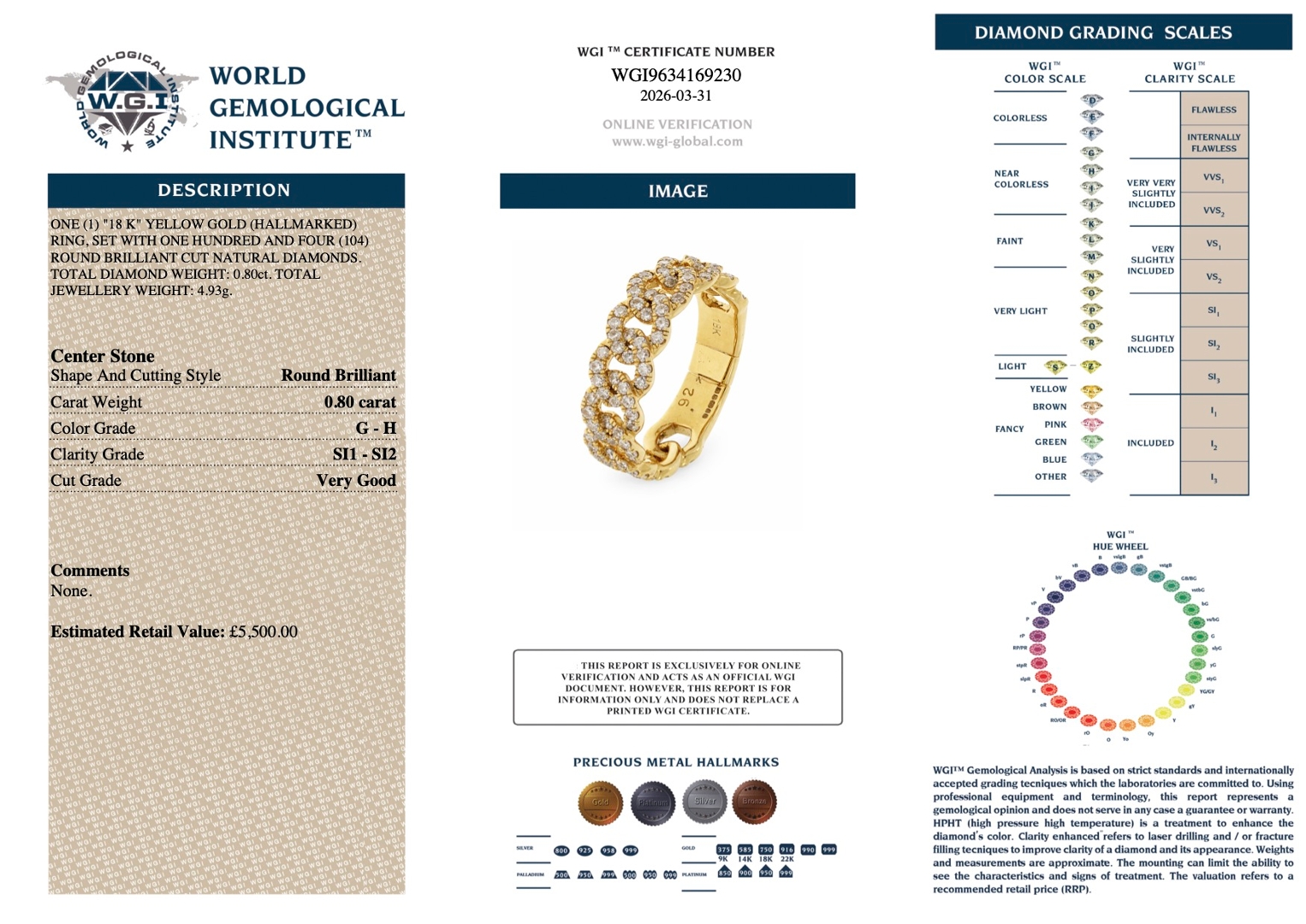 Crafted in solid 18ct yellow gold and weighing 4.93g, the ring offers a comfortable yet substantial feel, reflecting its quality construction. Natural diamond jewellery is often chosen not only for its beauty but also for its investment potential, which is supported by strong global demand. With a valuation of £5,500.00, this piece presents a compelling opportunity to acquire a certified natural diamond ring with lasting appeal.