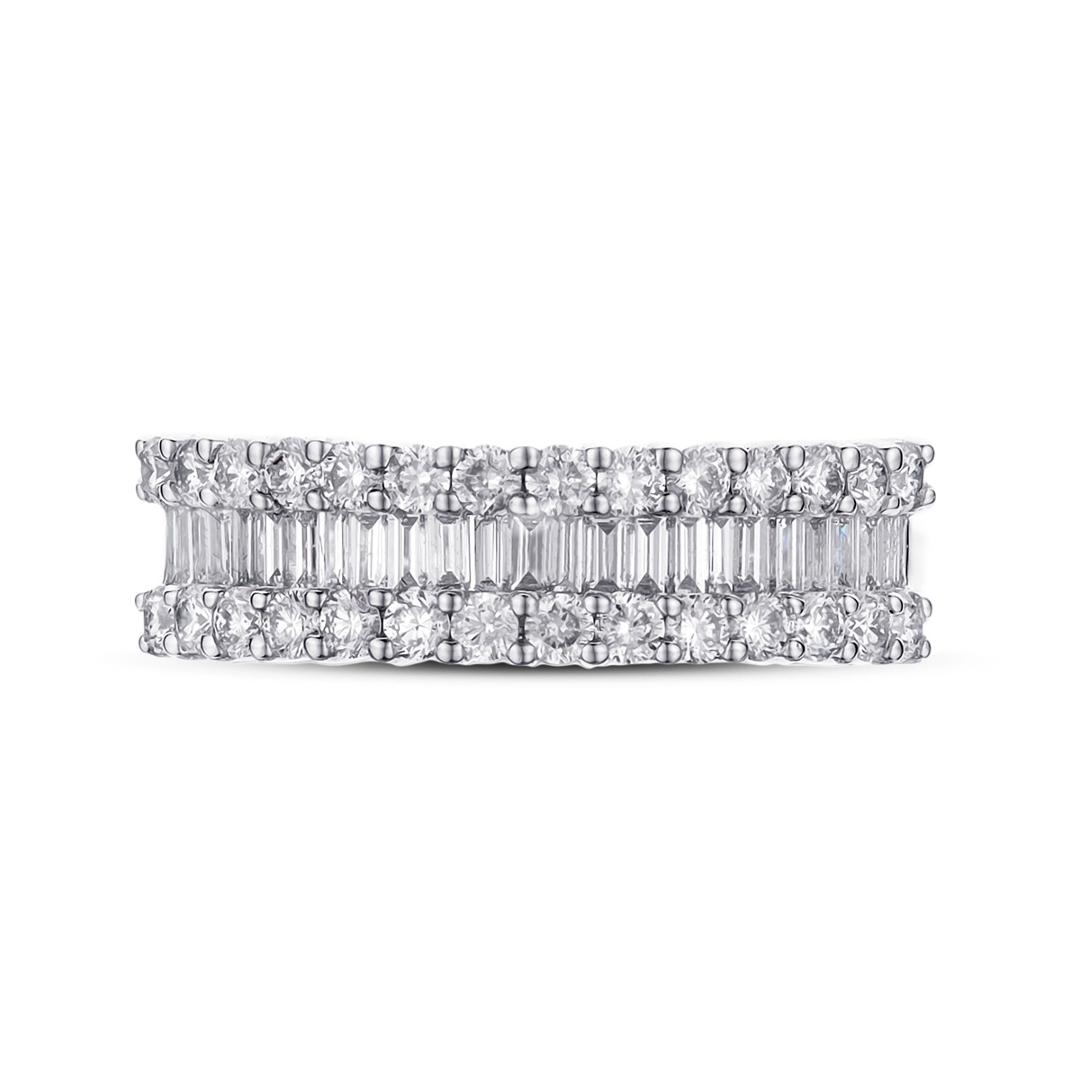 A brand-new, unused, certified platinum ring, this exquisite cluster design is a stunning testament to the timeless beauty of natural diamonds. Featuring a harmonious arrangement of baguette-cut and brilliant-cut diamonds, it radiates a dazzling brilliance that captivates the eye. With a total diamond weight of 0.95ct, these gems boast an exceptional clarity range of VS1-VS2 and a bright E-F colour grade, offering unparalleled sparkle and refinement.