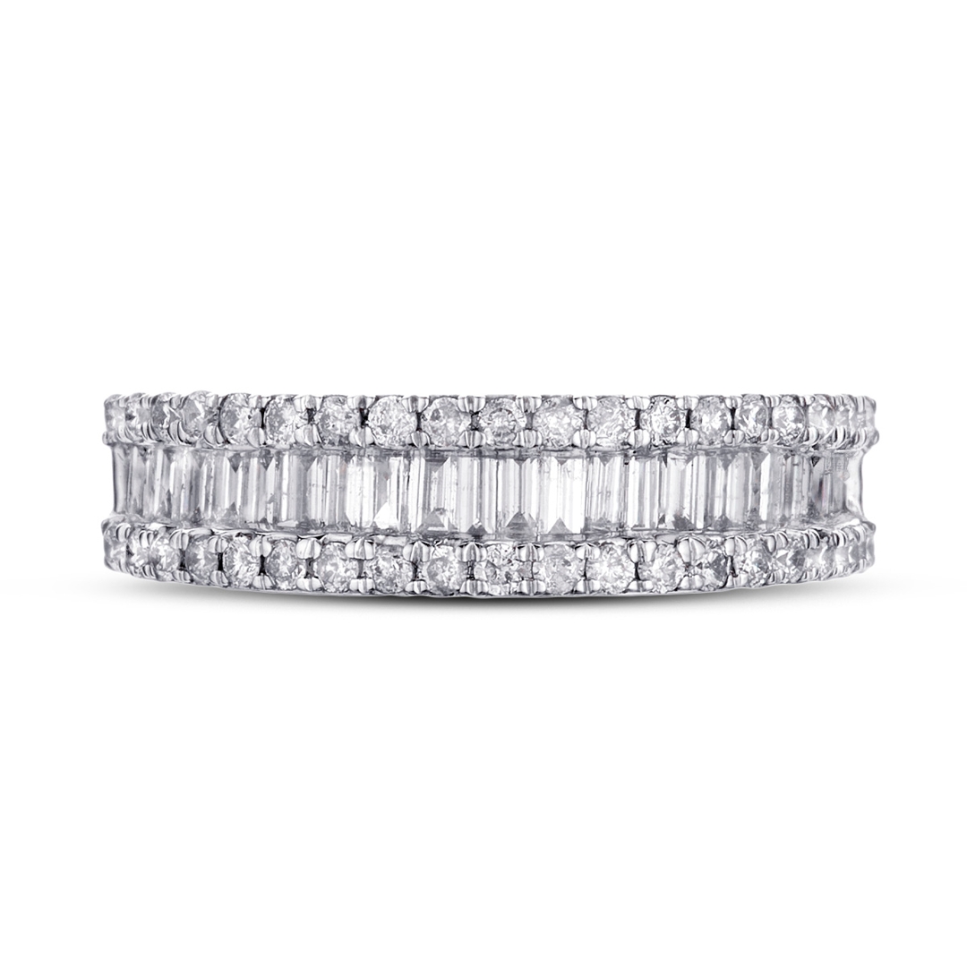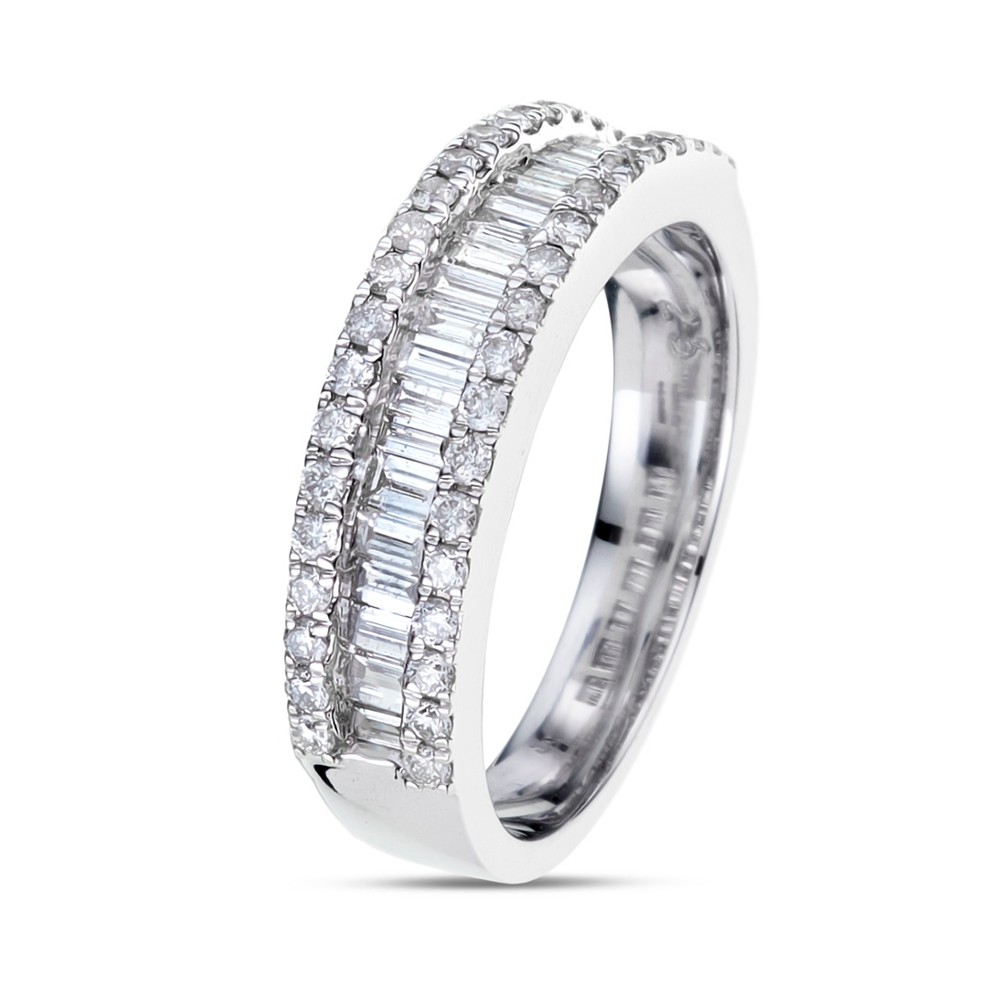The total diamond weight is 1.00 carats, and each diamond is carefully selected for clarity and quality. Graded SI1-SI2 for clarity and G-H for colour, the diamonds offer exceptional brilliance and fire, making the ring stand out. Combining cuts adds dimension and balance, creating a unique and timeless design.
