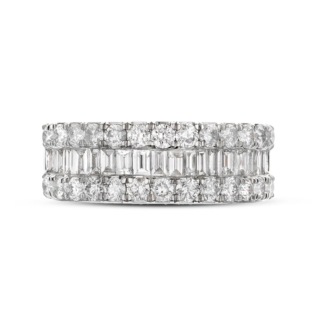 The total diamond weight is 1.60 ct, with each diamond carefully selected for clarity and natural brilliance. Graded SI1-SI2 for clarity and G-H for colour, the diamonds offer remarkable brilliance, reflecting light beautifully with every movement. The brilliant-cut diamonds provide exceptional sparkle, while the baguette-cut diamonds add an elegant contrast, creating a sophisticated design.