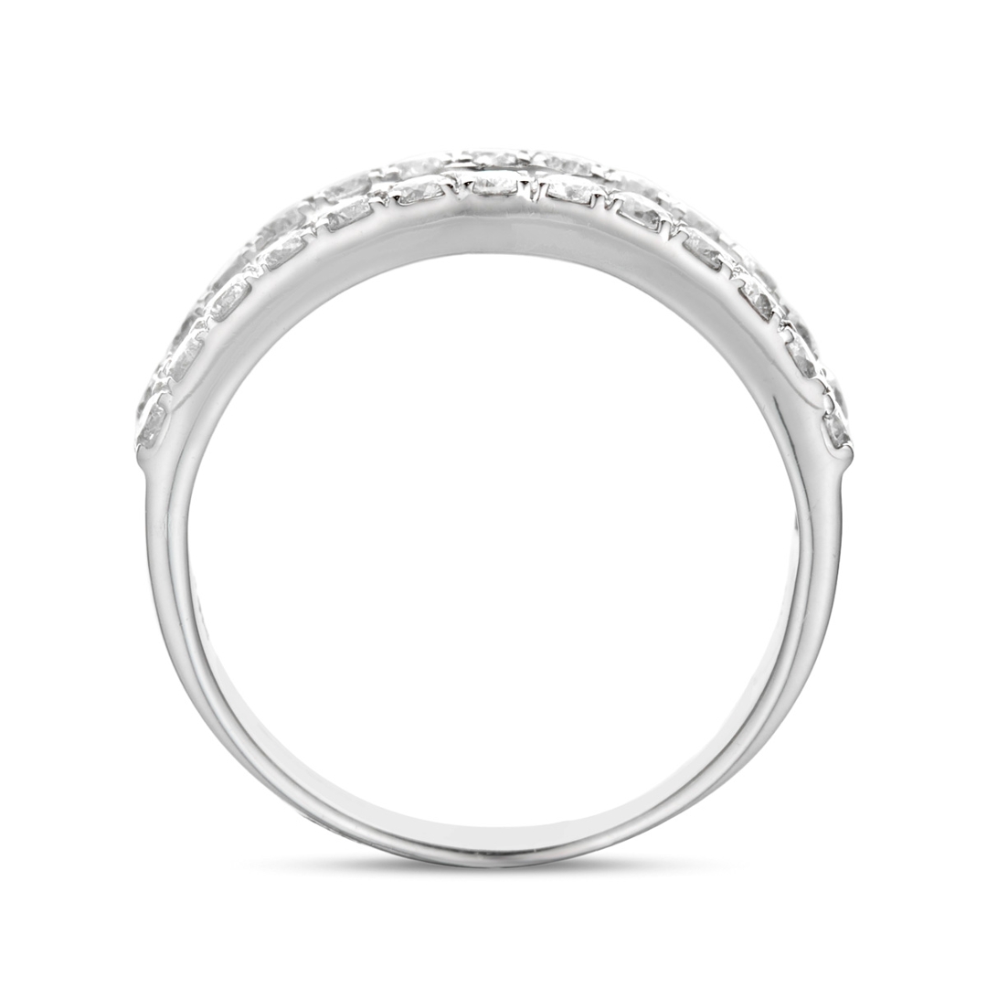 Crafted in 18ct white gold, the ring combines durability with elegance. The polished white gold setting complements the diamonds’ natural beauty, offering a timeless, luxurious finish. The strength of white gold ensures that this ring will remain a cherished piece, retaining its beauty for years to come.