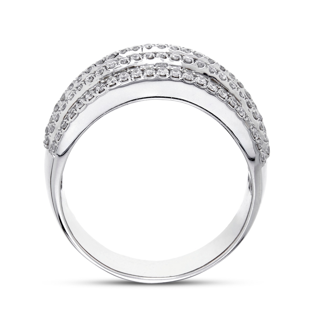 Crafted from 18ct white gold, the metal setting provides a sleek and modern backdrop for the stunning diamonds. Combining baguette-cut and brilliant-cut diamonds creates a captivating contrast, adding depth and dimension to the ring's design.