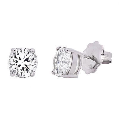 A brand-new, unused, certified pair of natural diamond solitaire earrings, with two cushion old-cut diamonds, set in 18ct white gold.