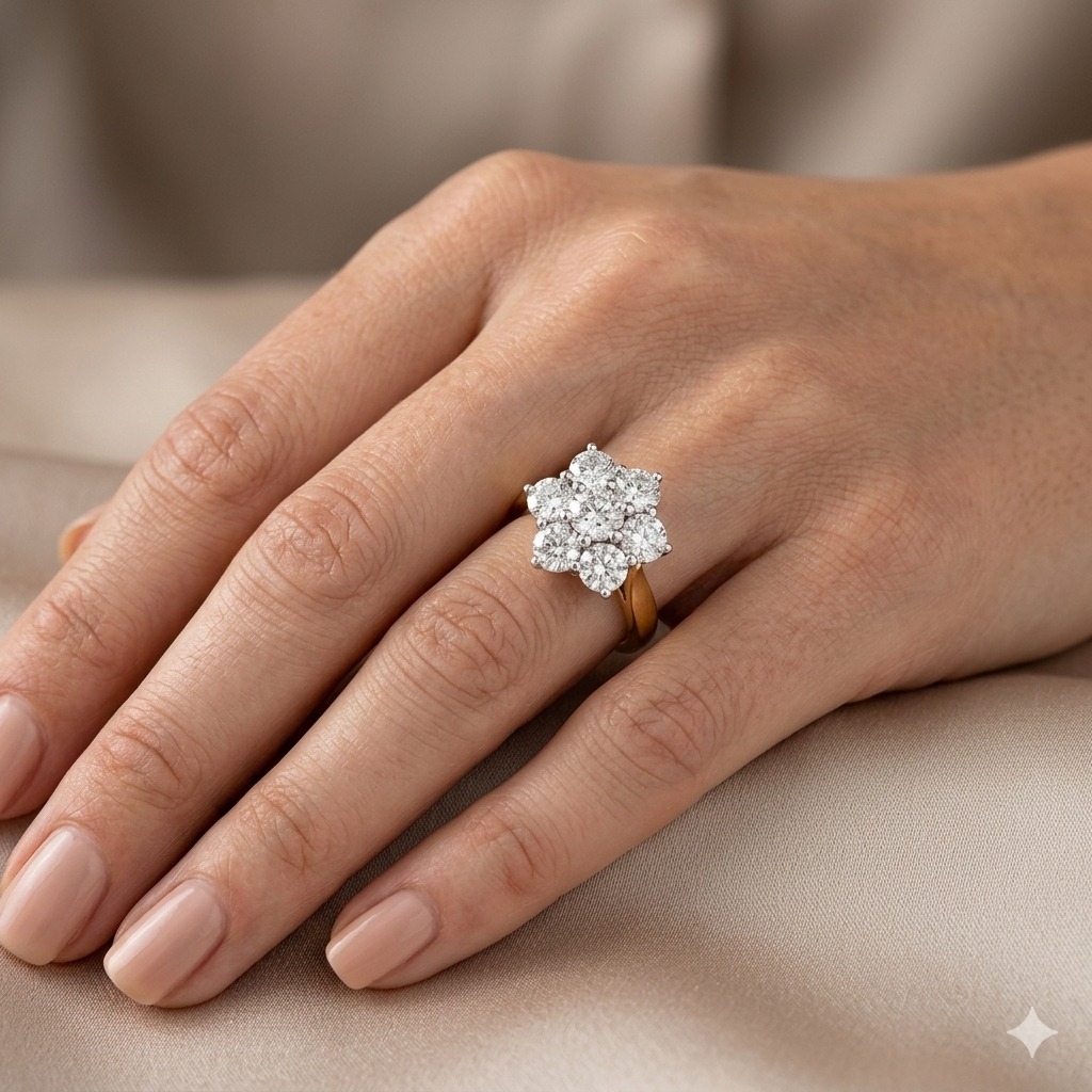- > Natural Diamond Daisy Shaped Cluster Ring 3.10ct
