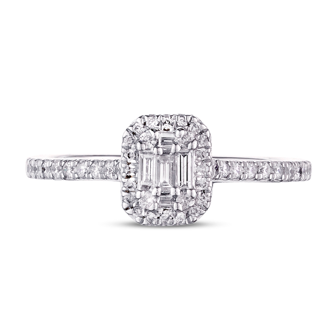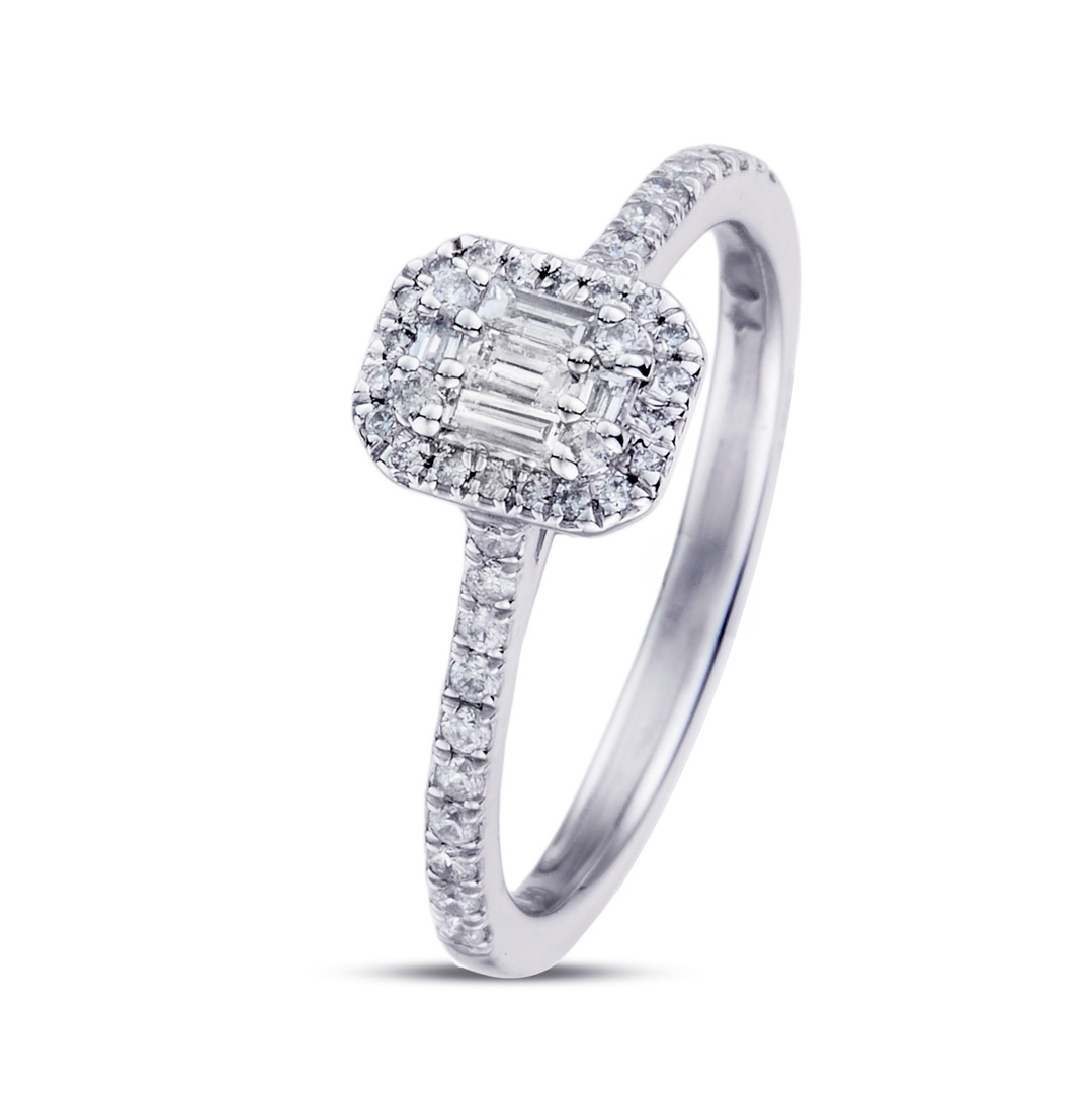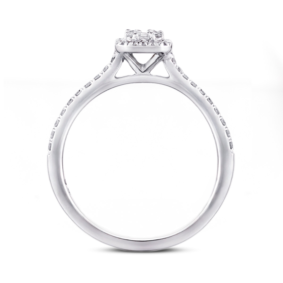 - > Natural Diamond Emerald Shaped Cluster Ring 0.34ct