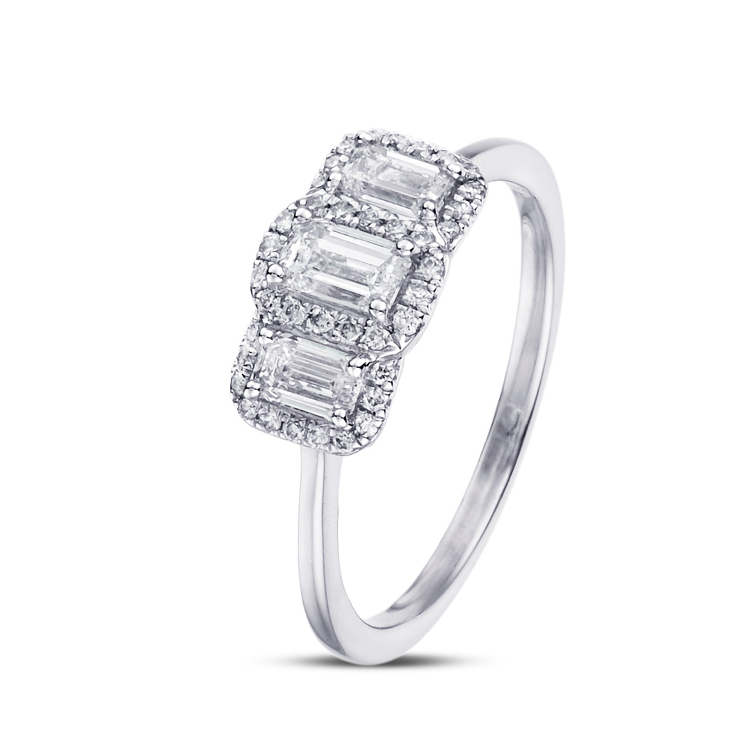 - > Natural Diamond Emerald Shaped Trio Cluster Ring 0.80ct