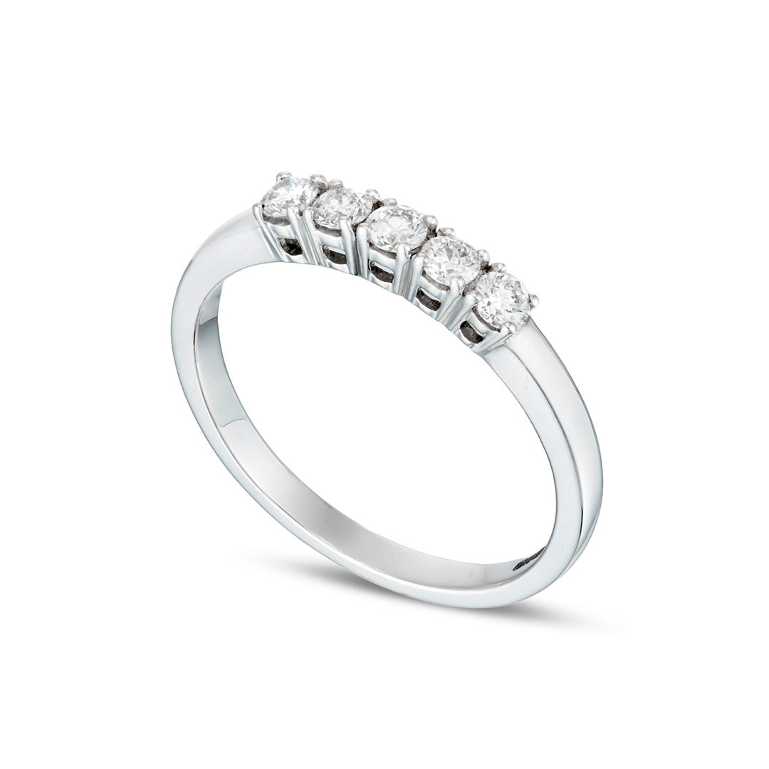 A brand-new, unused, certified natural diamond five-stone eternity ring, with five brilliant-cut diamonds, set in 18ct white gold.