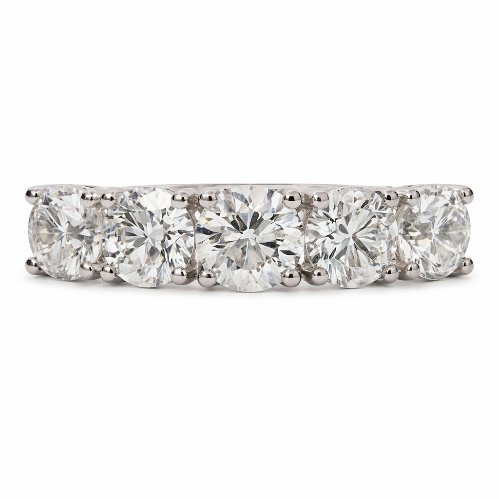 Each diamond is carefully selected for consistency in size and appearance, with the brilliant cut designed to maximise light performance, producing lively sparkle and fire from every angle. The evenly spaced setting enhances the flow of light across the ring, while the platinum mount provides a naturally bright and durable foundation that complements the diamonds and ensures long-lasting wear.