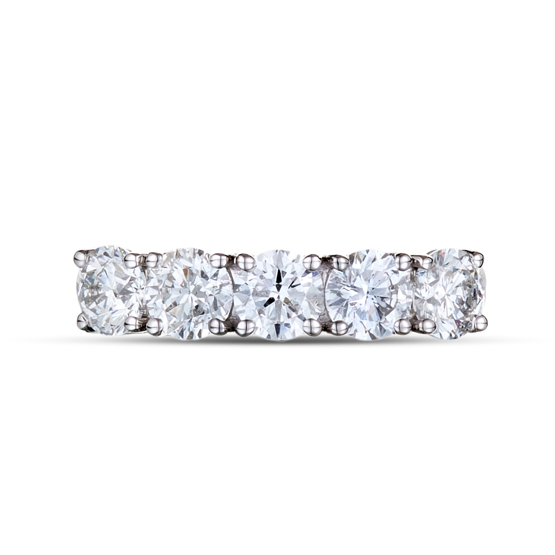 Natural diamonds are celebrated for their rarity, durability, and enduring brilliance, representing both beauty and long-term value. As one of nature’s most precious creations, they are cherished not only for their stunning appearance but also for their reliable investment potential, which maintains and appreciates in value over time. With a total weight of 5.31 grams and an insurance valuation of £6,885.00, this certified ring exemplifies fine craftsmanship, timeless style, and lasting significance. A perfect expression of love and commitment, this five-stone eternity ring captures the eternal allure of natural diamonds and the strength of platinum—an exquisite piece designed to be treasured for generations.