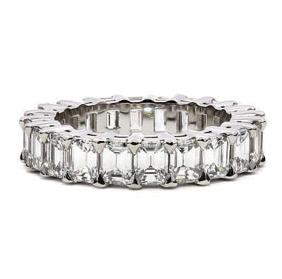 A brand-new, unused, certified natural diamond full eternity ring, with twenty-two emerald-cut diamonds, set in platinum.