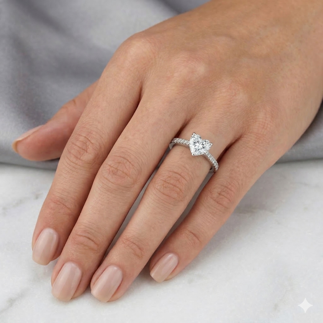 - > Natural Diamond Heart Cut Solitaire Engagement Ring 1.74ct